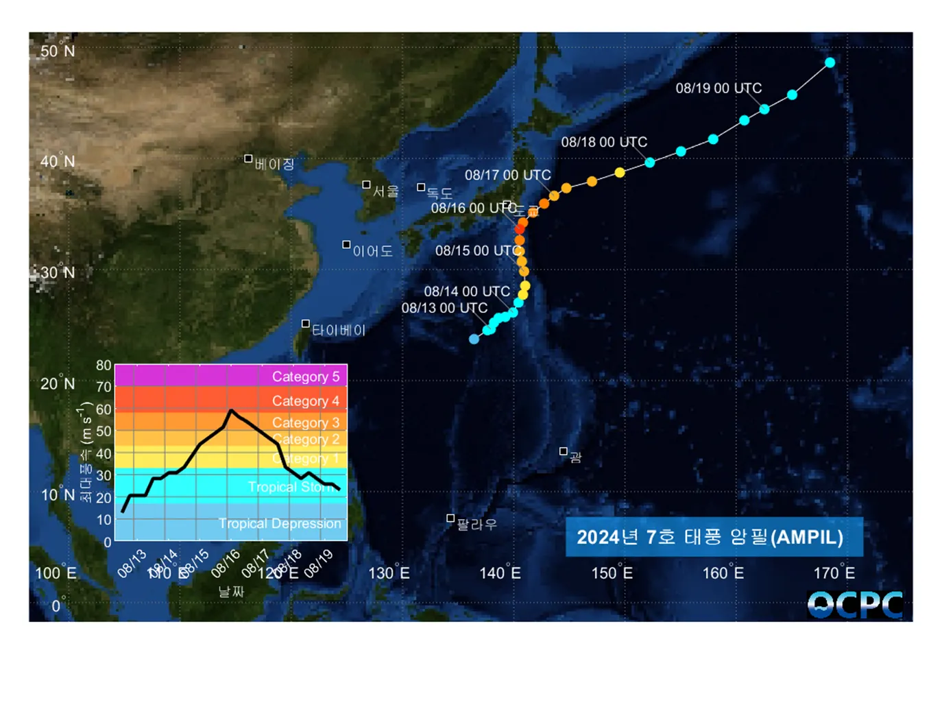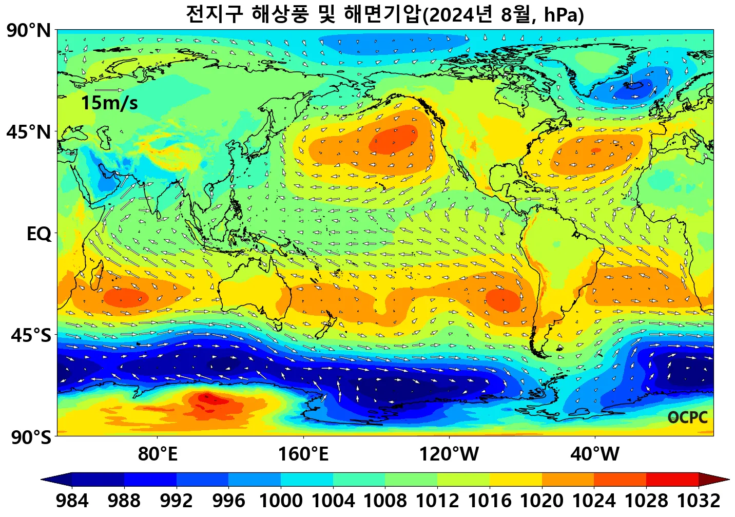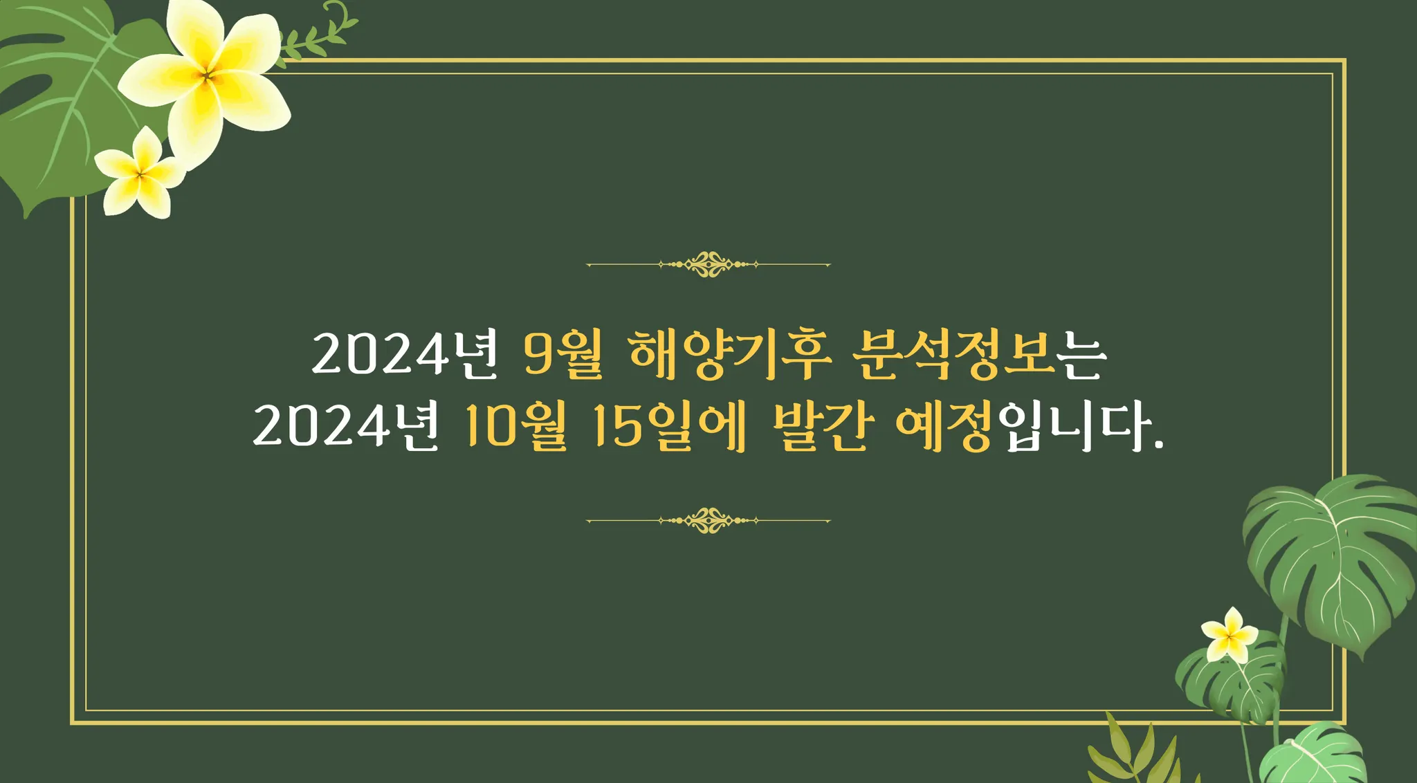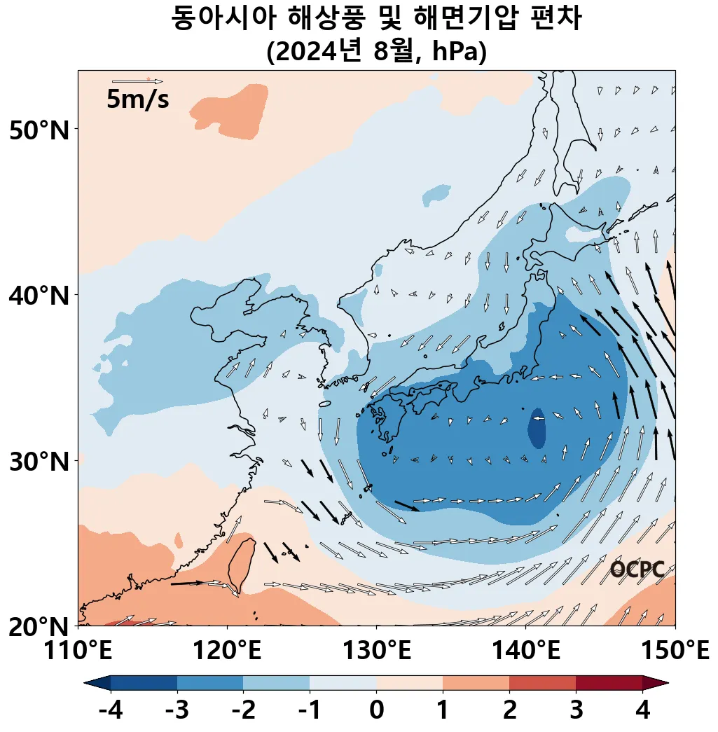 동해, 황해, 동중국해의 해상기온은 평년(22.6±0.6°C, 25.6±0.4°C, 27.8±0.2°C)보다 각각 1.8°C, 2.5°C, 1.6°C 높았으며, 황해 및 동중국해의 해상기온은 1994~2024년(8월) 중 가장 높았습니다.