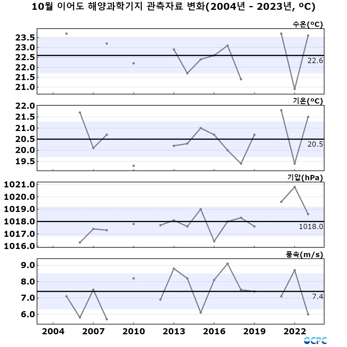 ※ 본 ‘해양과학기지 자료 분석 (2023년 9월)’은 분석은 ‘관할해역 첨단 해양과학기지 구축 및 융합연구’ 과제 및 국립해양조사원에서 제공하는 해양과학기지 관측자료를 사용하였음