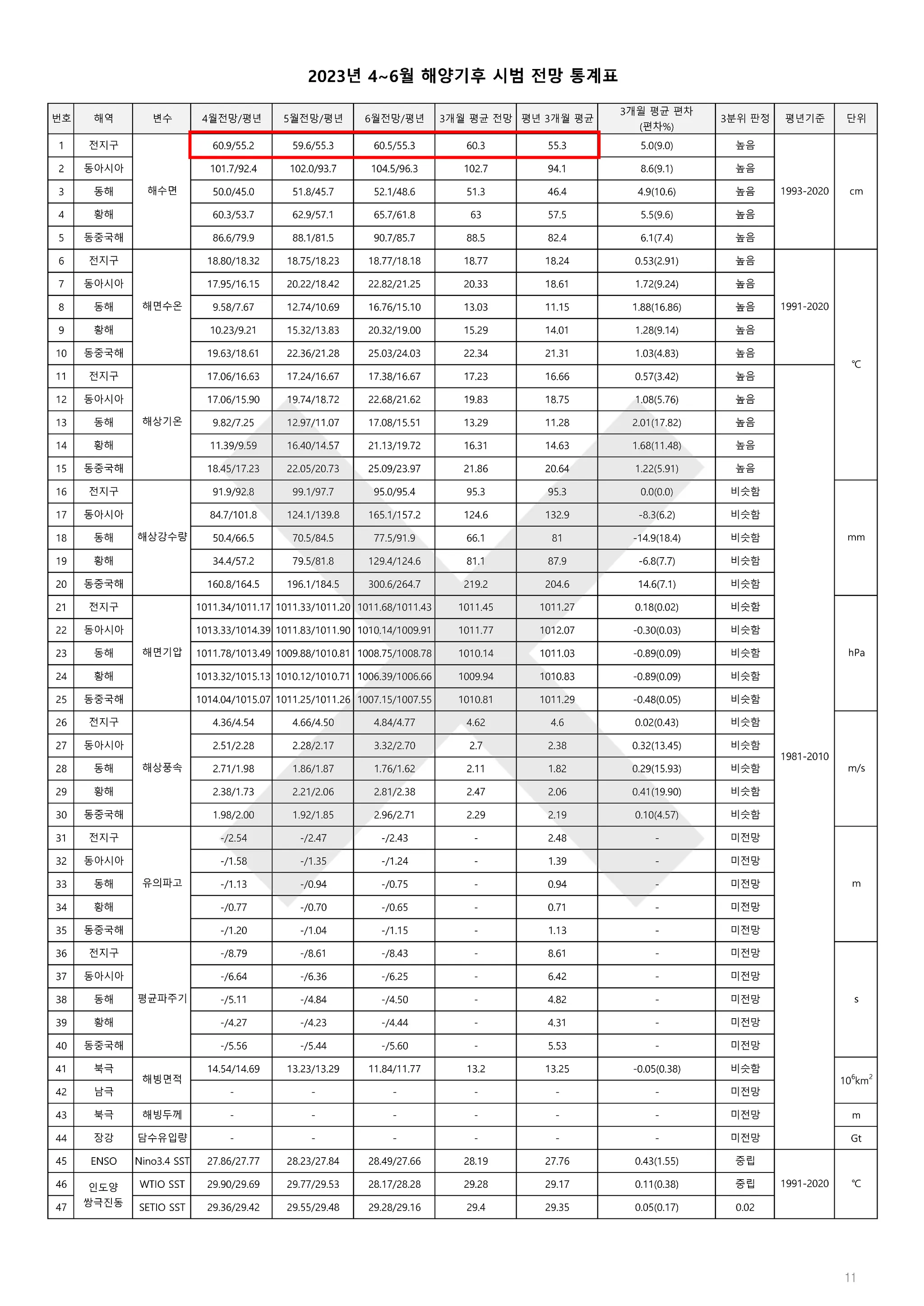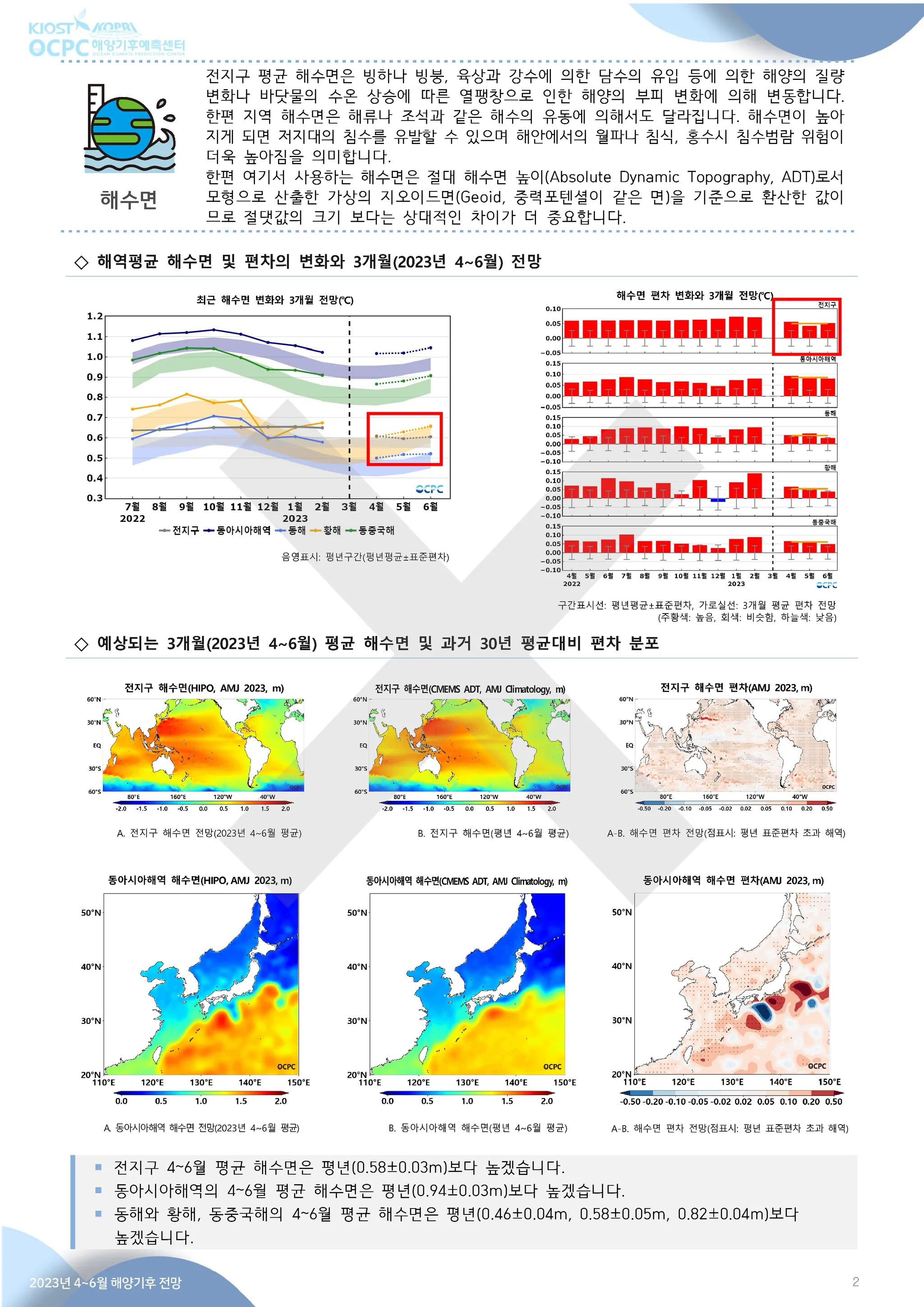 2023년 3월 31일 발간된 2023년 4월~2023년 6월 해양기후 시범 전망 내용에 오류(해수면 평균 및 편차)가 발견되어 다음과 같이 사후 수정하였음을 알려드리오니 양해 부탁드립니다.