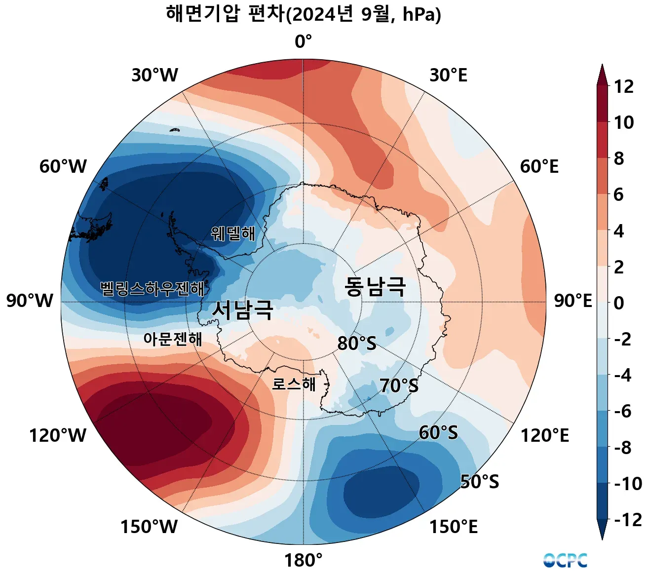 ㅇ 남극과 중위도의 대기 압력 패턴의 변동을 나타내는 기후 현상으로, SAM(Southern Annual Mode)으로도 알려져 있음. 남극진동은 남극 해빙 변화 뿐만 아니라, 남반구 열대 및 중위도 기후변화에 큰 영향을 미침.