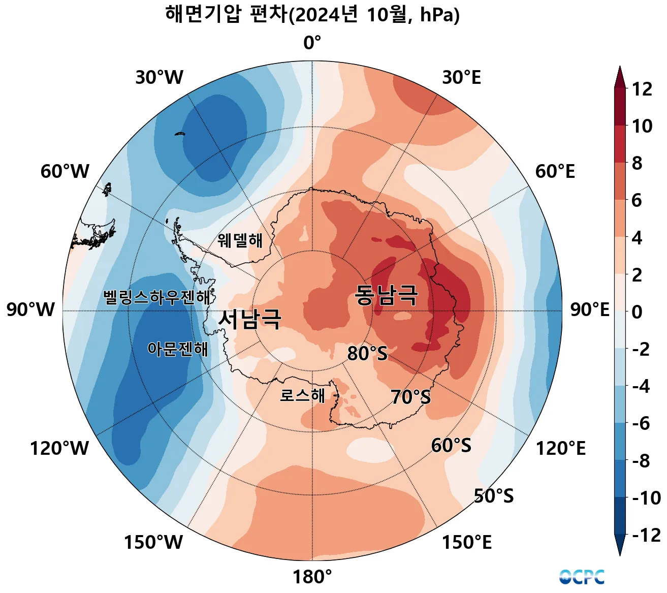 ㅇ 남극과 중위도의 대기 압력 패턴의 변동을 나타내는 기후 현상으로, SAM(Southern Annual Mode)으로도 알려져 있음. 남극진동은 남극 해빙 변화 뿐만 아니라, 남반구 열대 및 중위도 기후변화에 큰 영향을 미침.