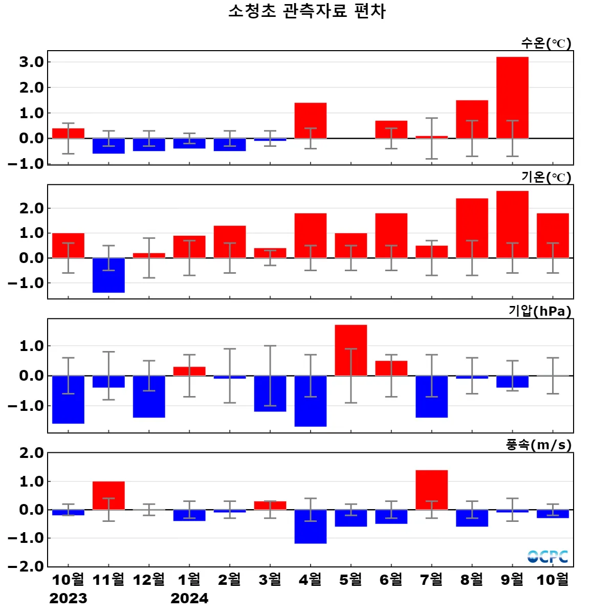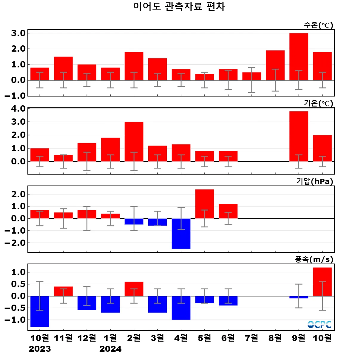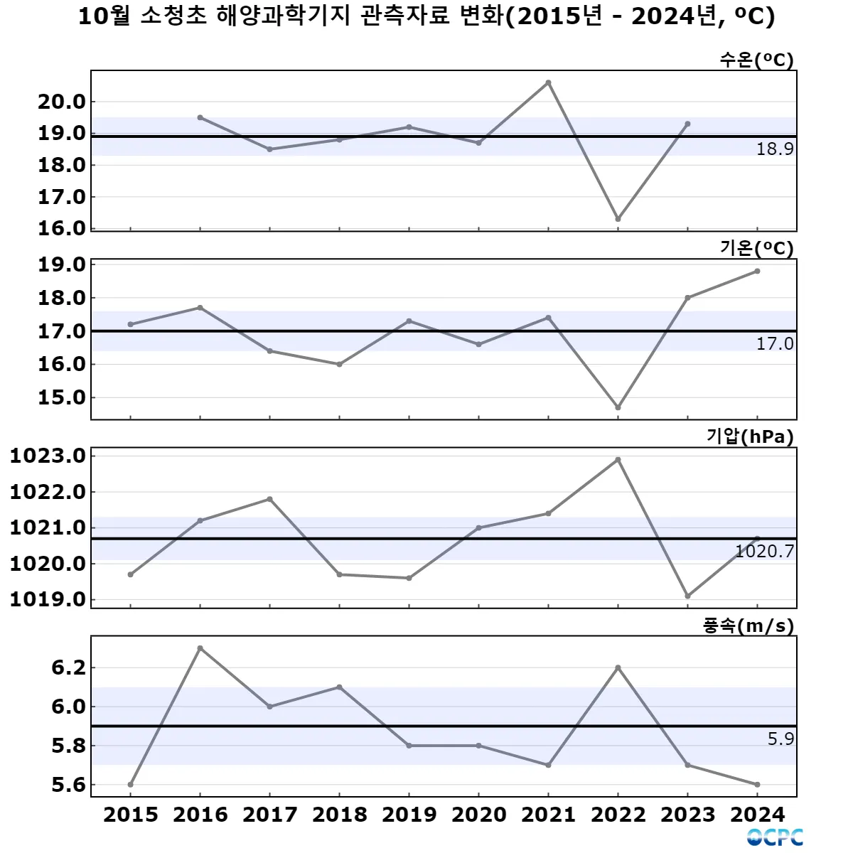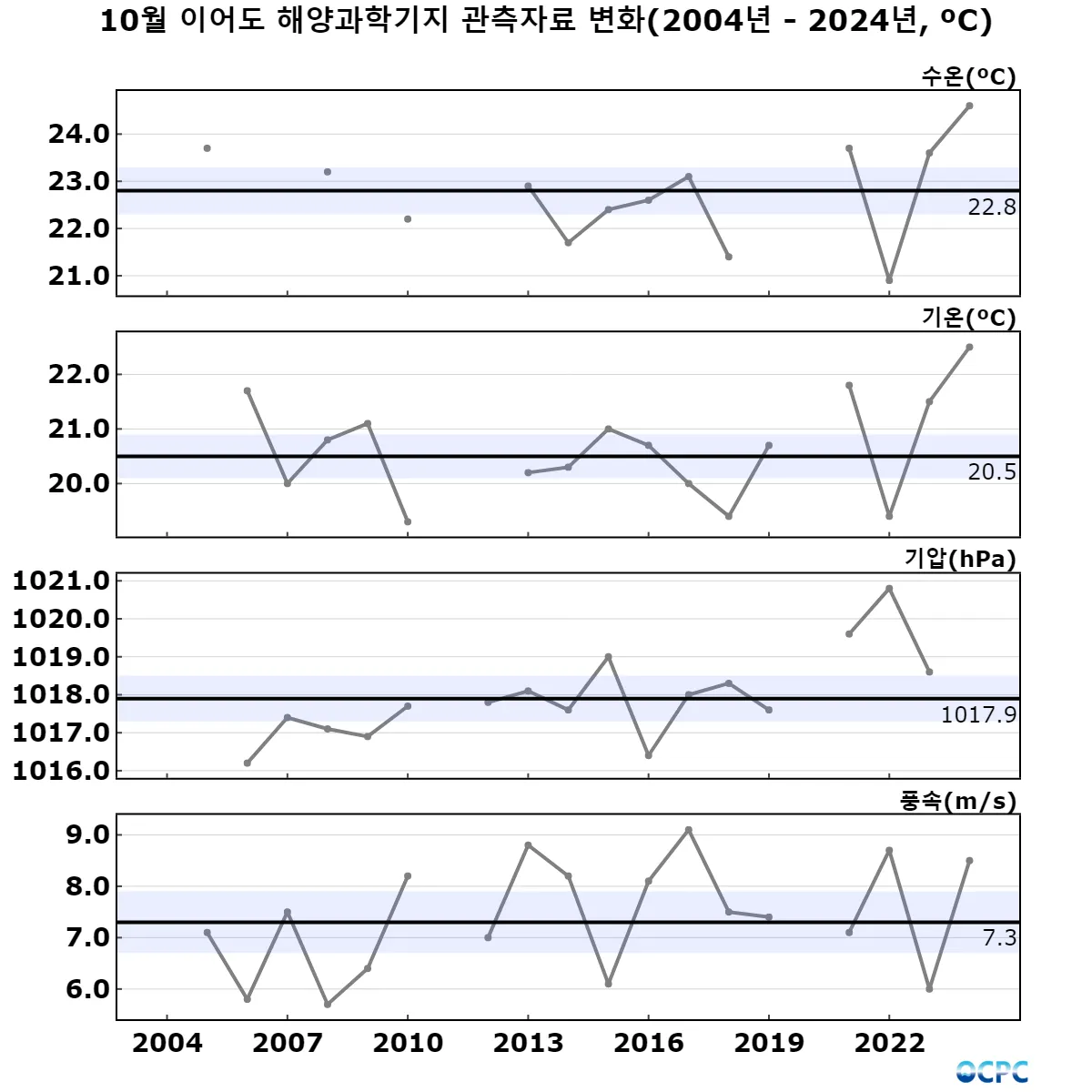 해양과학기지 관측자료 10월 추세