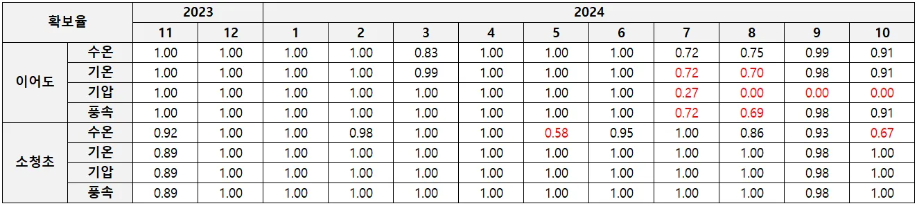 해양과학기지 관측자료 확보율