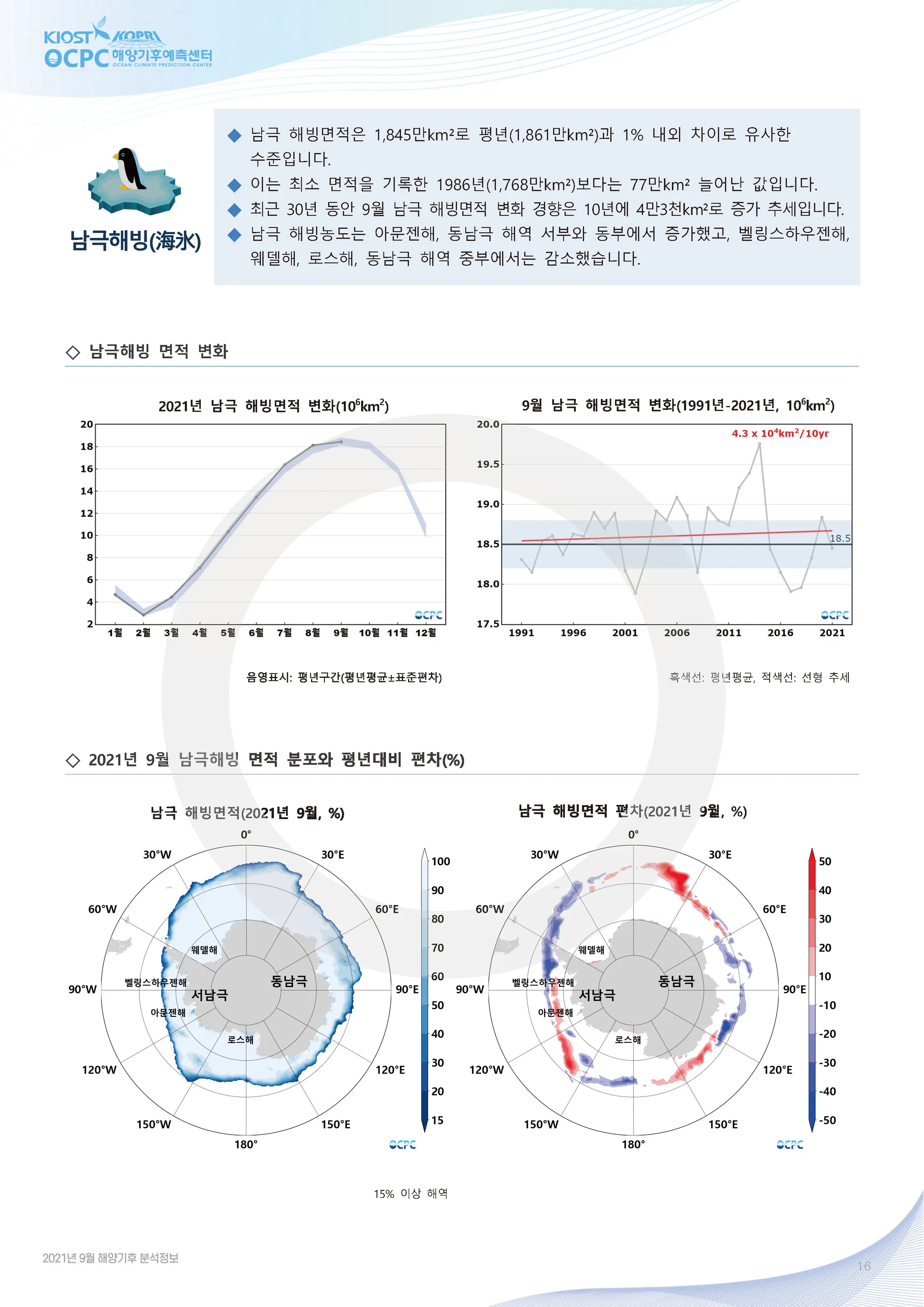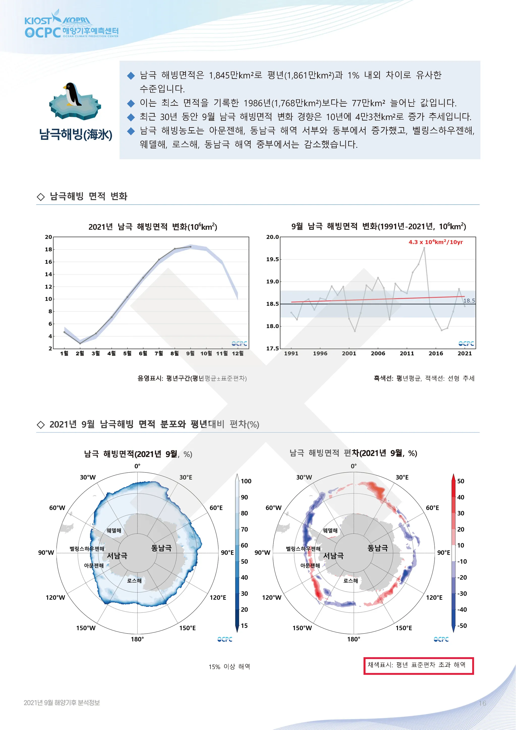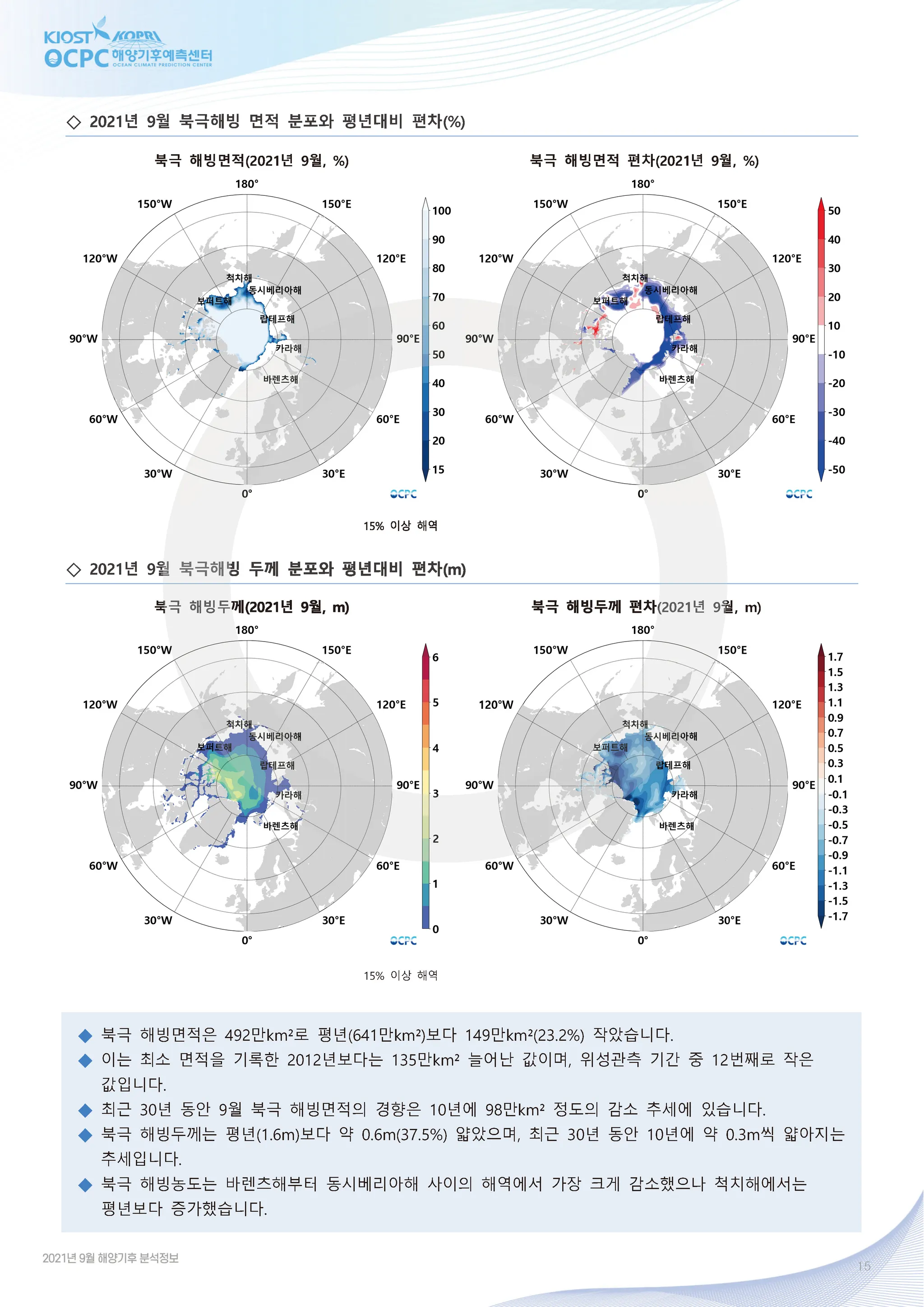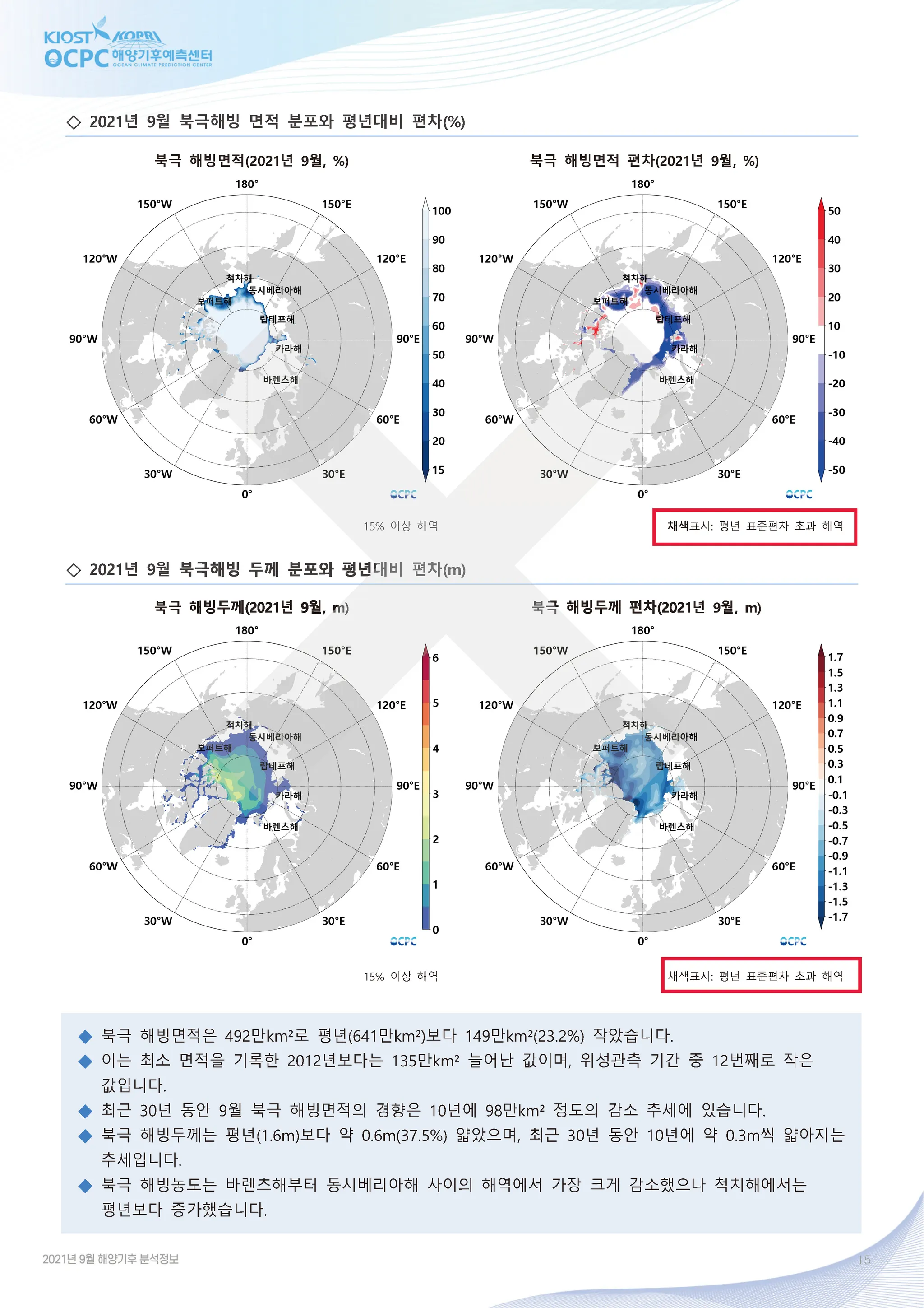 북극 해빙 농도 및 두께 편차, 남극 해빙 농도 편차 공간분포 그림 설명에 오류가 있어 수정하였습니다.