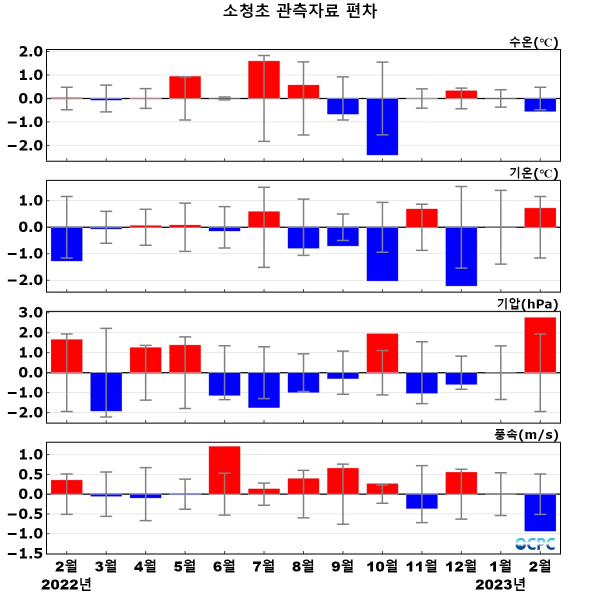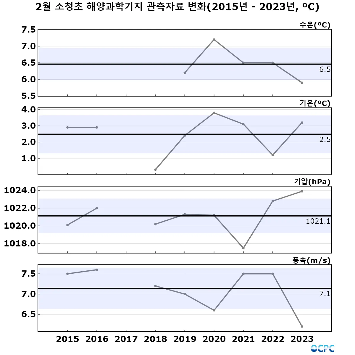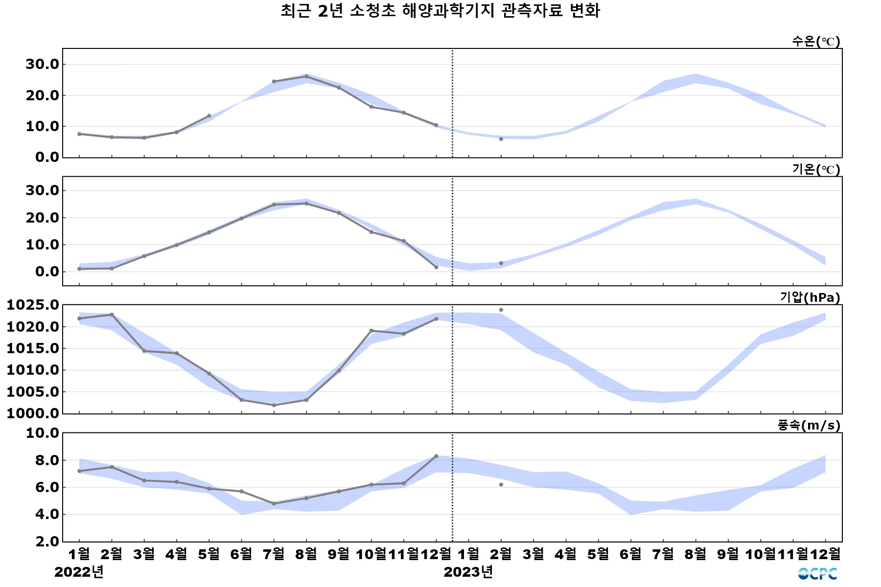 ※ 본 ‘해양과학기지 자료 분석 (2023년 2월)’은 분석은 국립해양조사원에서 제공하는 해양과학기지 관측자료를 사용하였음