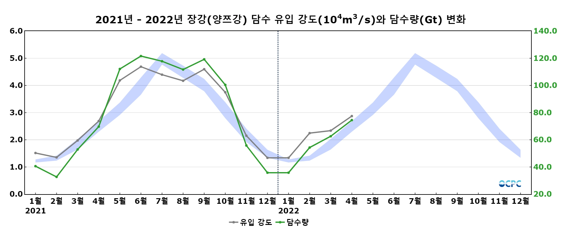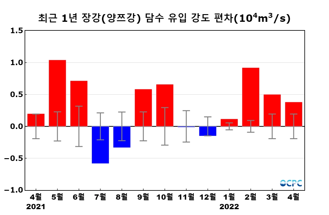 장강(양쯔강)으로부터의 담수 유입 강도는 초당 28,728톤으로 평년(초당 24,916톤)보다 15.3% 증가했습니다.