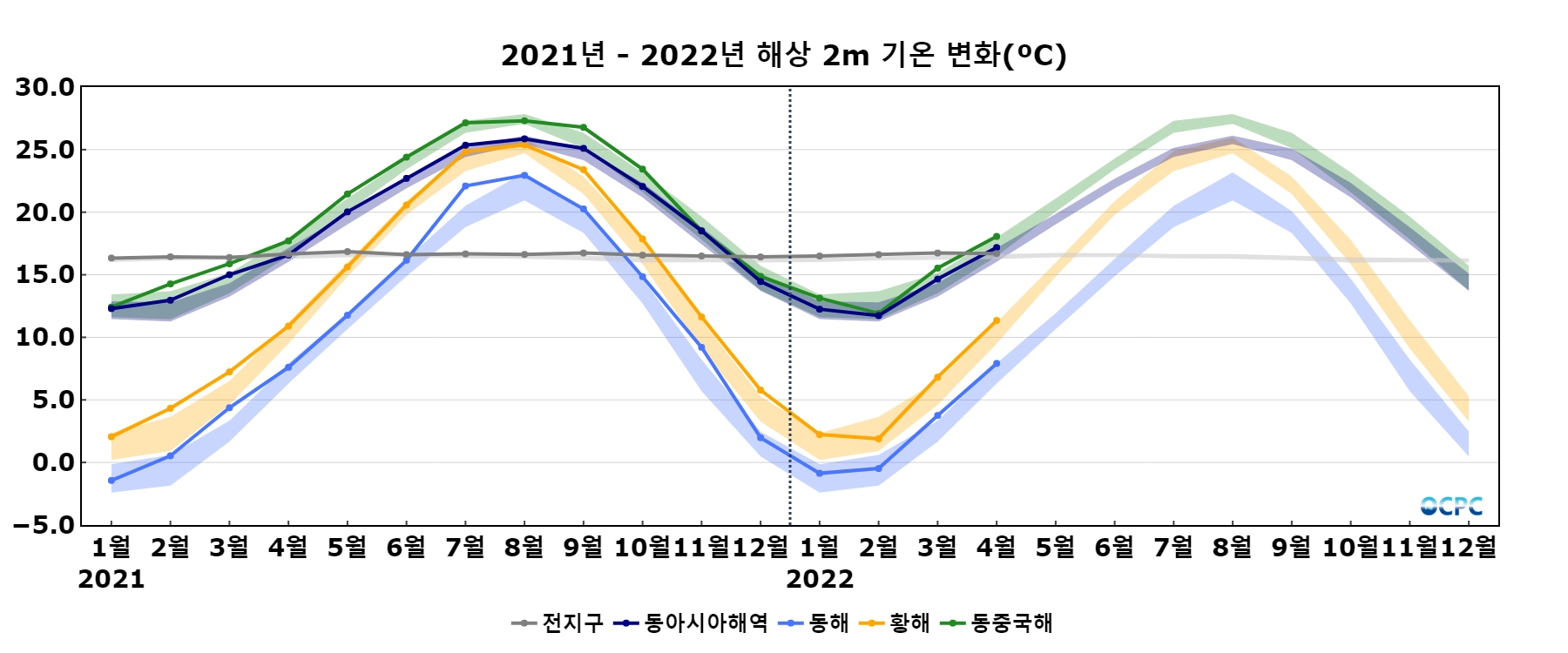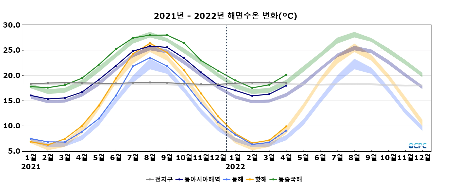 음영표시: 평년구간(평년평균±표준편차)