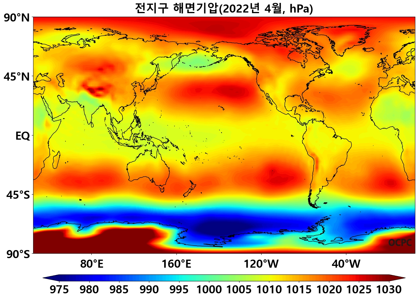 [해면기압] 전지구, 동아시아해역, 동해, 황해, 동중국해의 해면기압은 평년과 비슷했습니다.