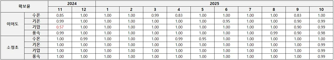 해양과학기지 관측자료 확보율
