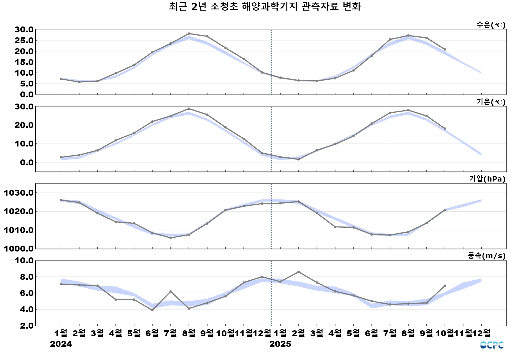 ※ 본 ‘해양과학기지 자료 분석 (2025년 9월)’은 분석은 ‘관할해역 첨단 해양과학기지 구축 및 융합연구’ 과제 및 국립해양조사원에서 제공하는 해양과학기지 관측자료를 사용하였음