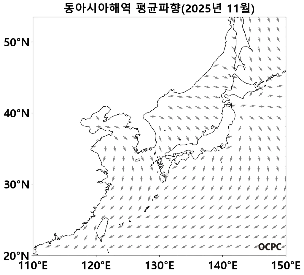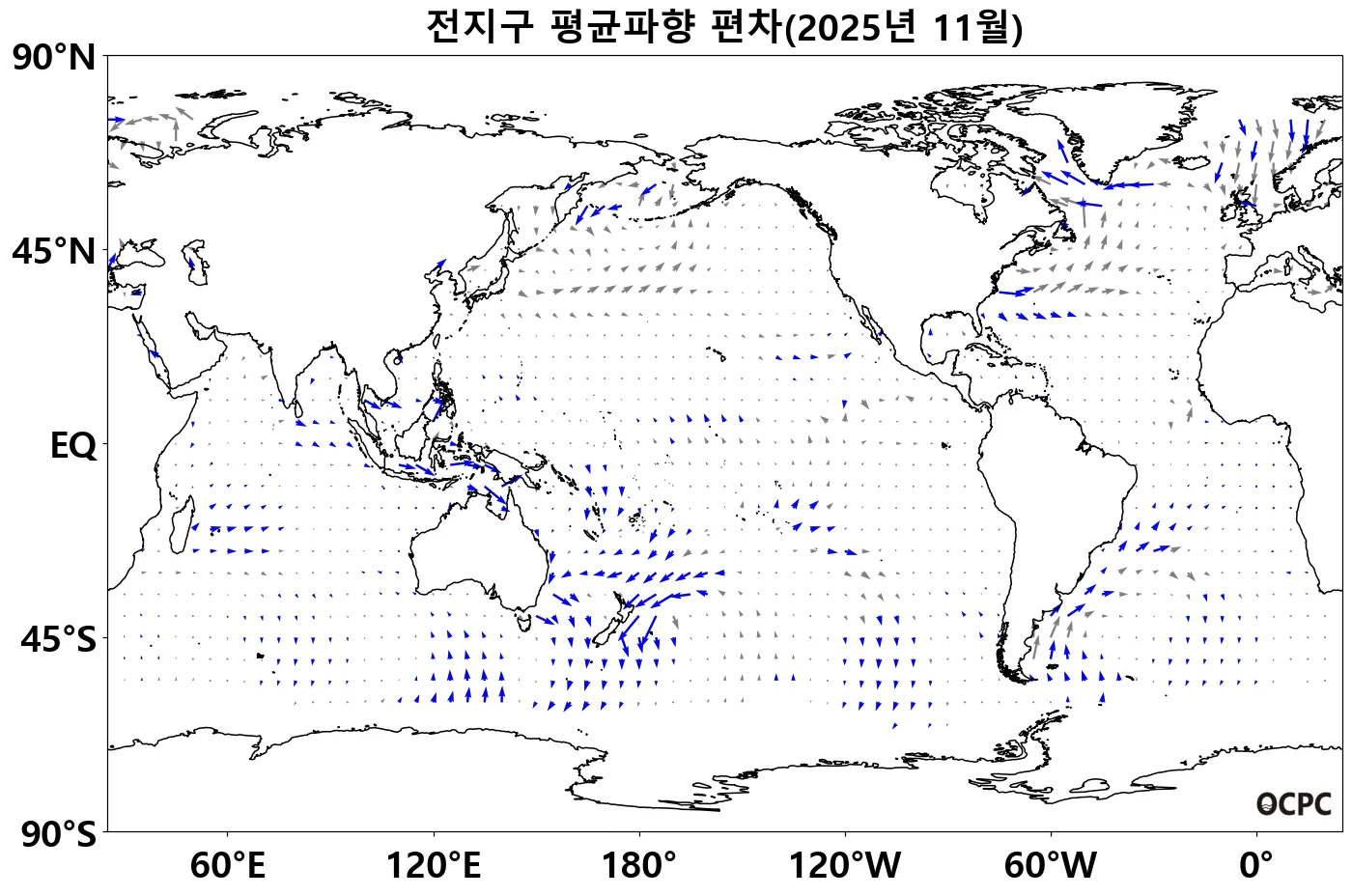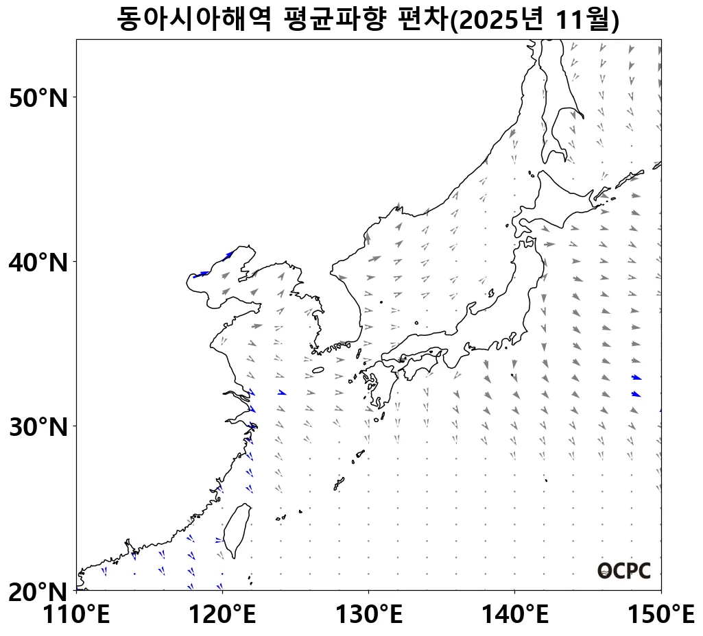 청색벡터(화살표): 평년 표준편차 초과 해역