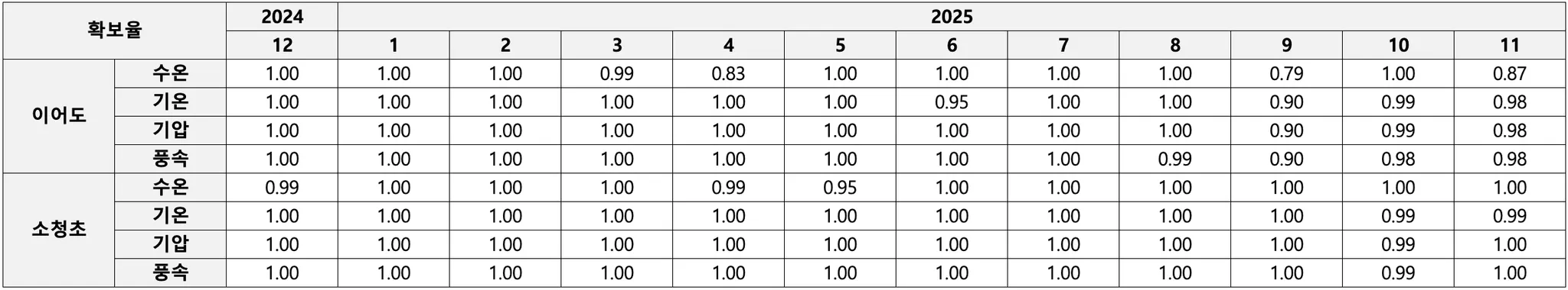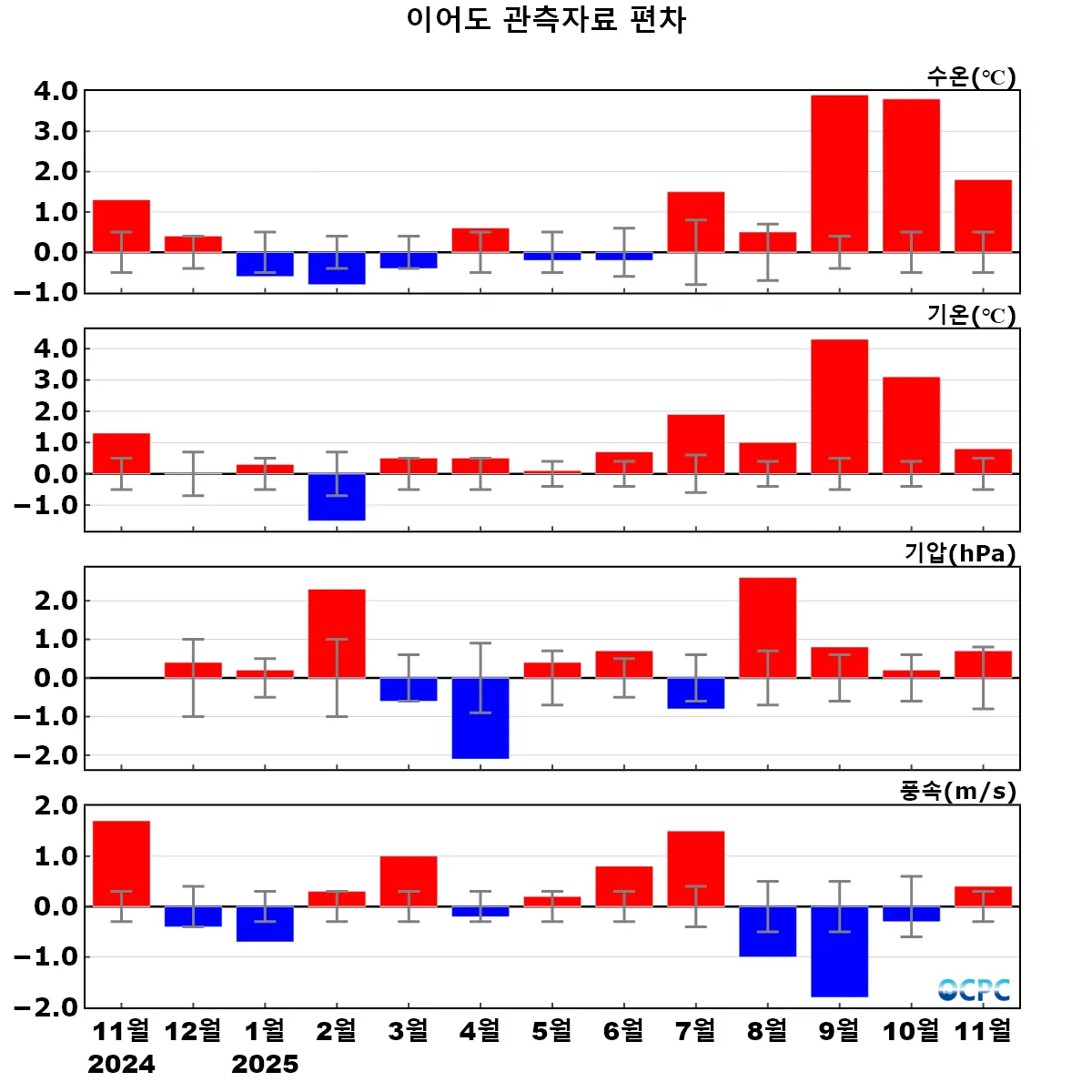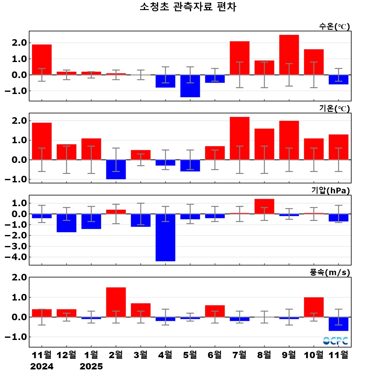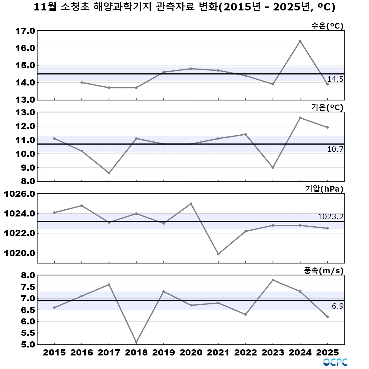 ※ 본 ‘해양과학기지 자료 분석 (2025년 11월)’은 분석은 ‘관할해역 첨단 해양과학기지 구축 및 융합연구’ 과제 및 국립해양조사원에서 제공하는 해양과학기지 관측자료를 사용하였음