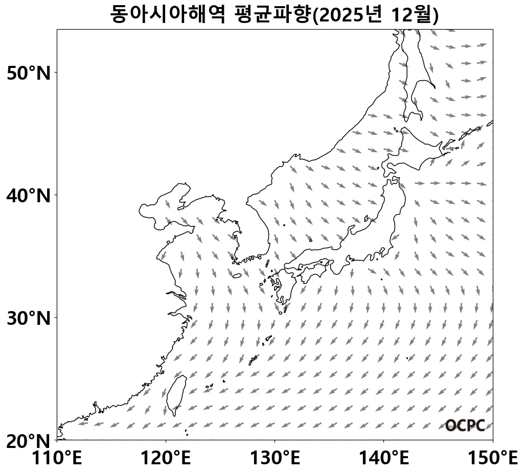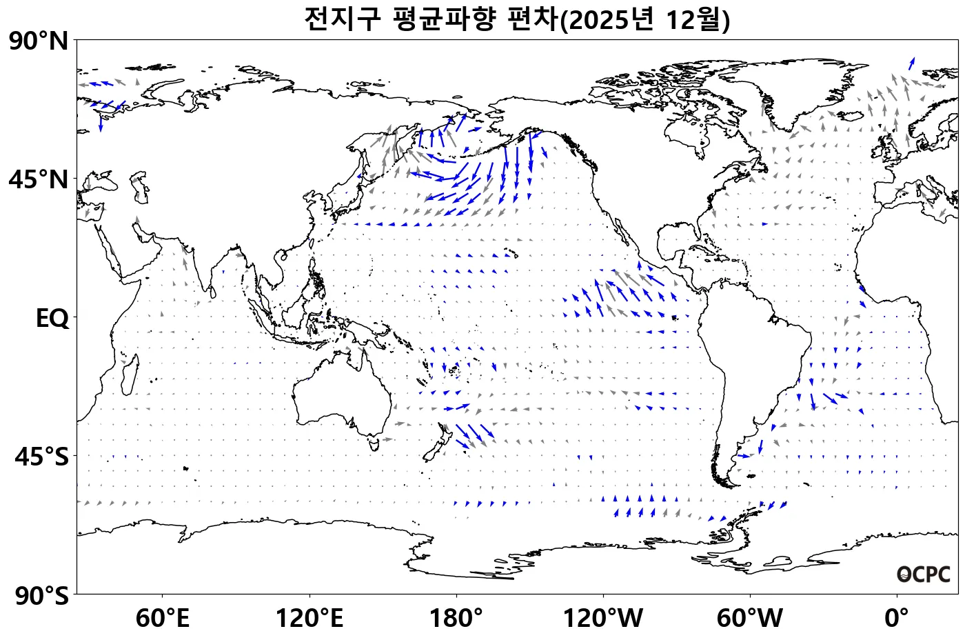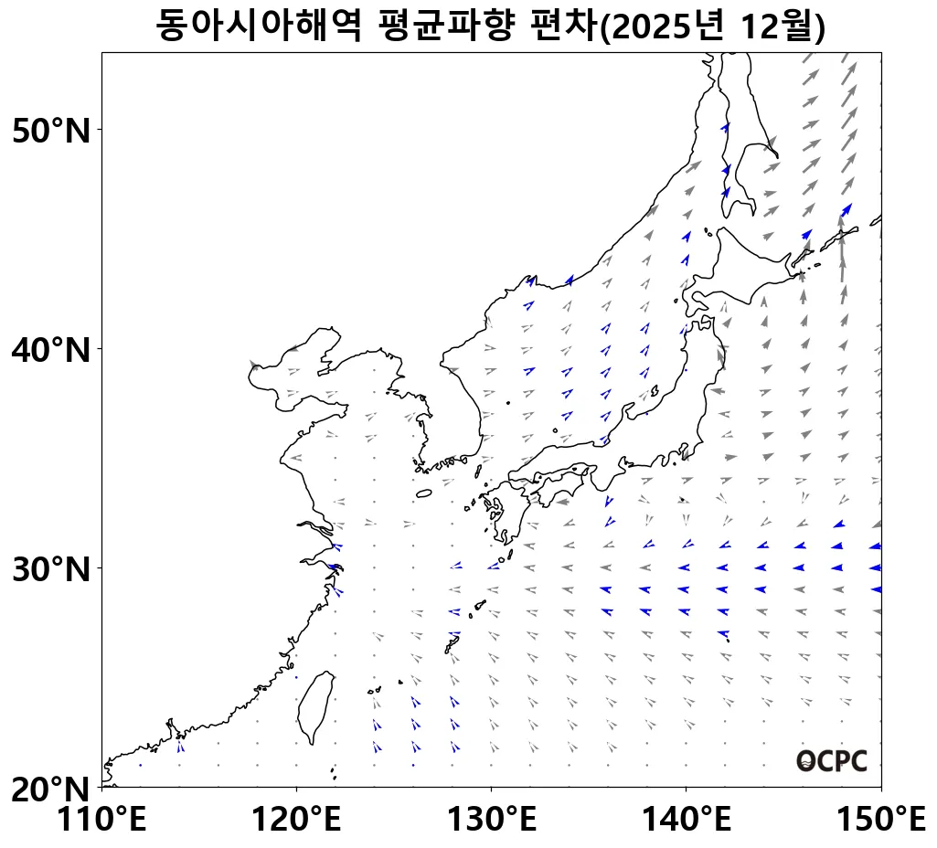 청색벡터(화살표): 평년 표준편차 초과 해역