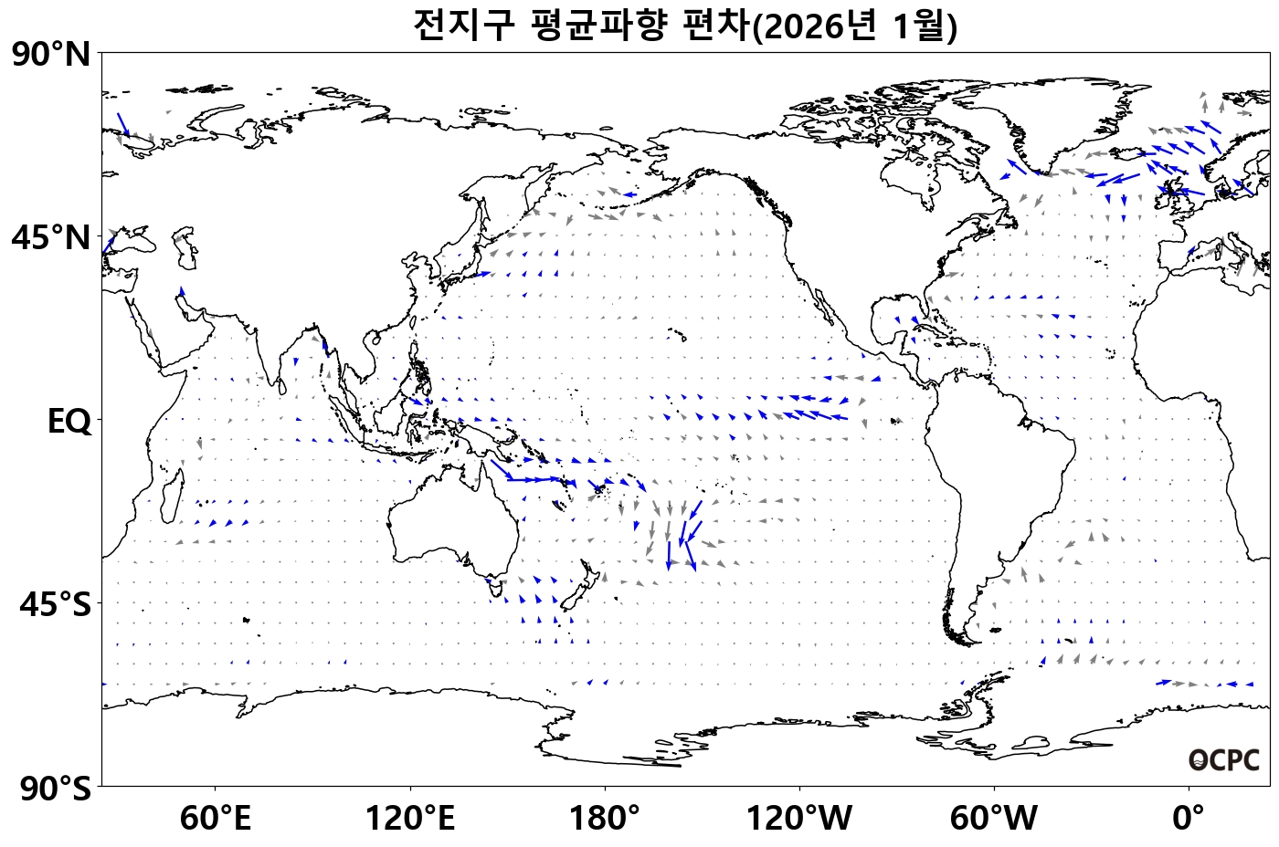 청색벡터(화살표): 평년 표준편차 초과 해역