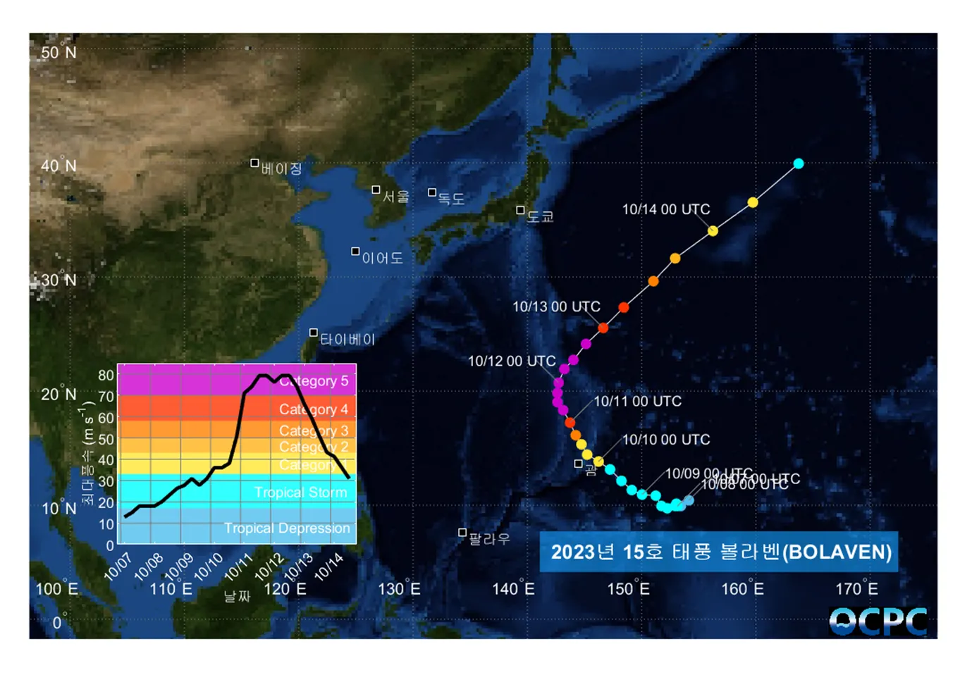 2023년 15호 태풍 볼라벤 (BOLAVEN) 진로 및 강도