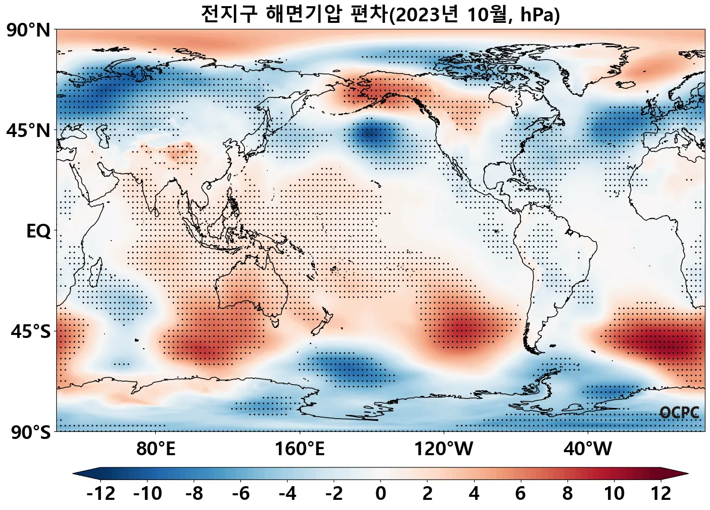 9월에 이어 엘니뇨 현상의 발달과 인도양 쌍극진동의 강화에 따라 남극 주변 해역의 동서 방향의 기압 변화가 두드러지게 나타나고 있습니다.