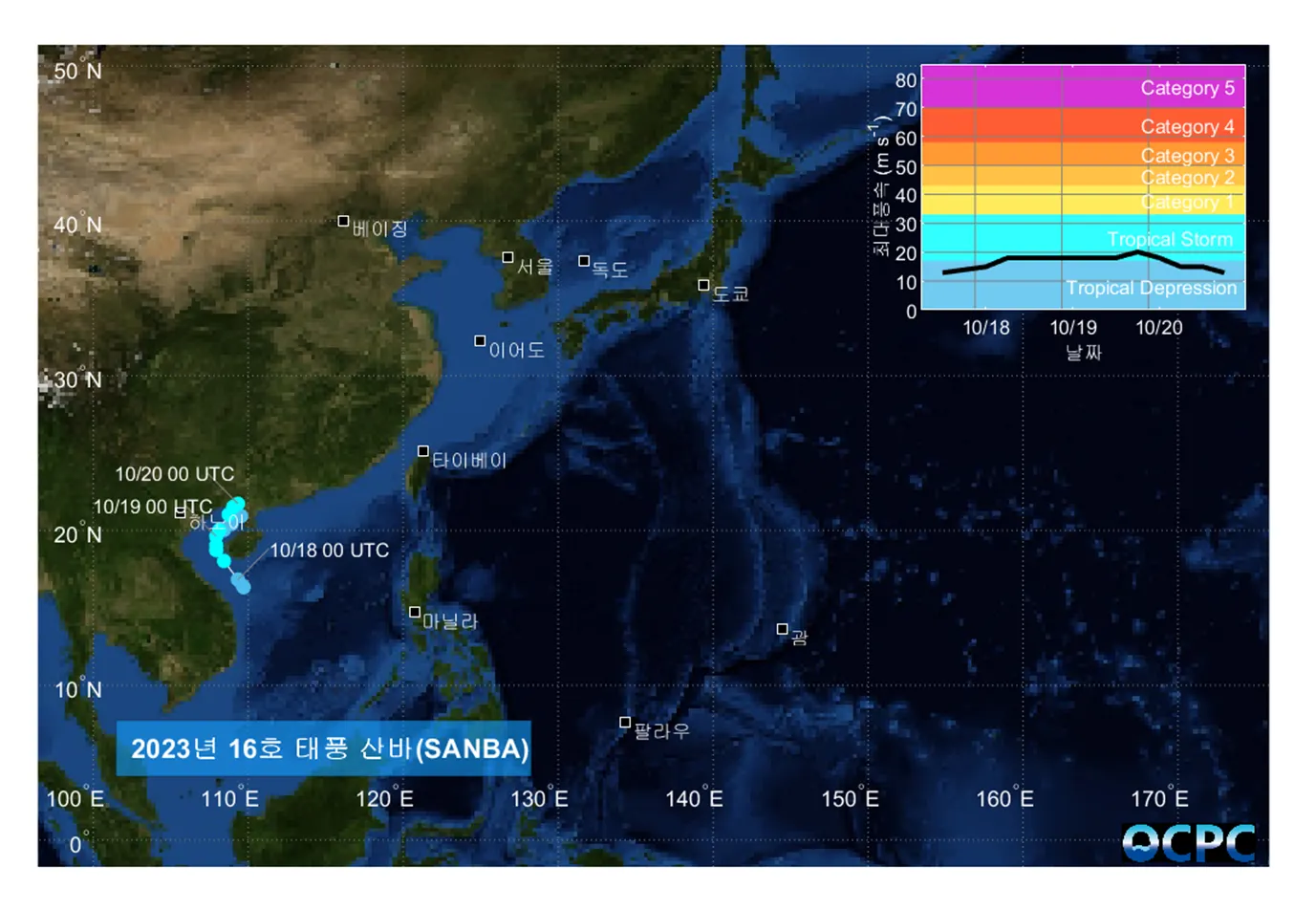 2023년 16호 태풍 산바 (SANBA) 진로 및 강도