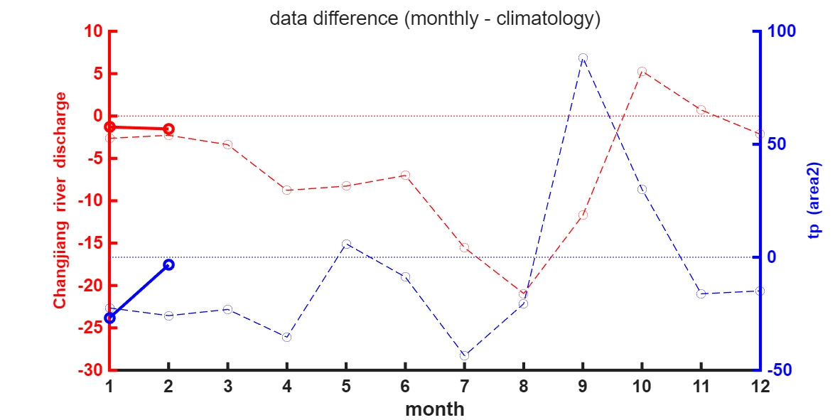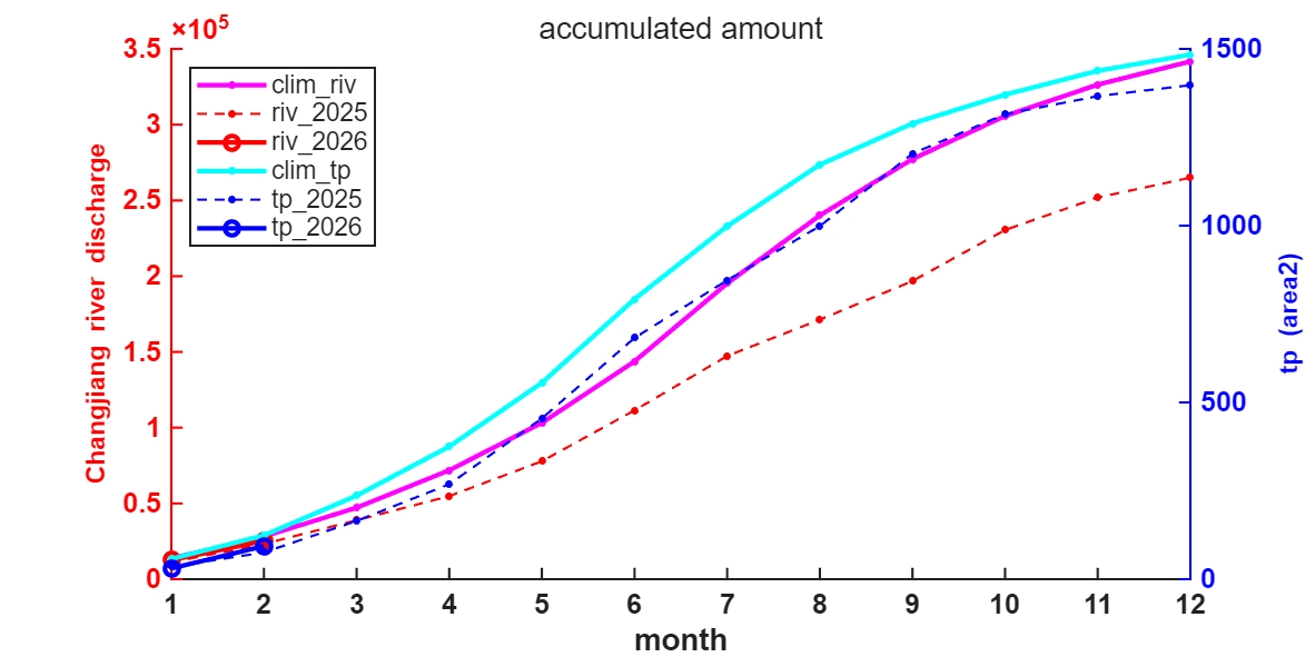 - 장강유역 강수량과 장강유입량의 누적량 모두 2025년 2월보다는 약간 증가함. 그러나 여전히 평년보다는 감소함.