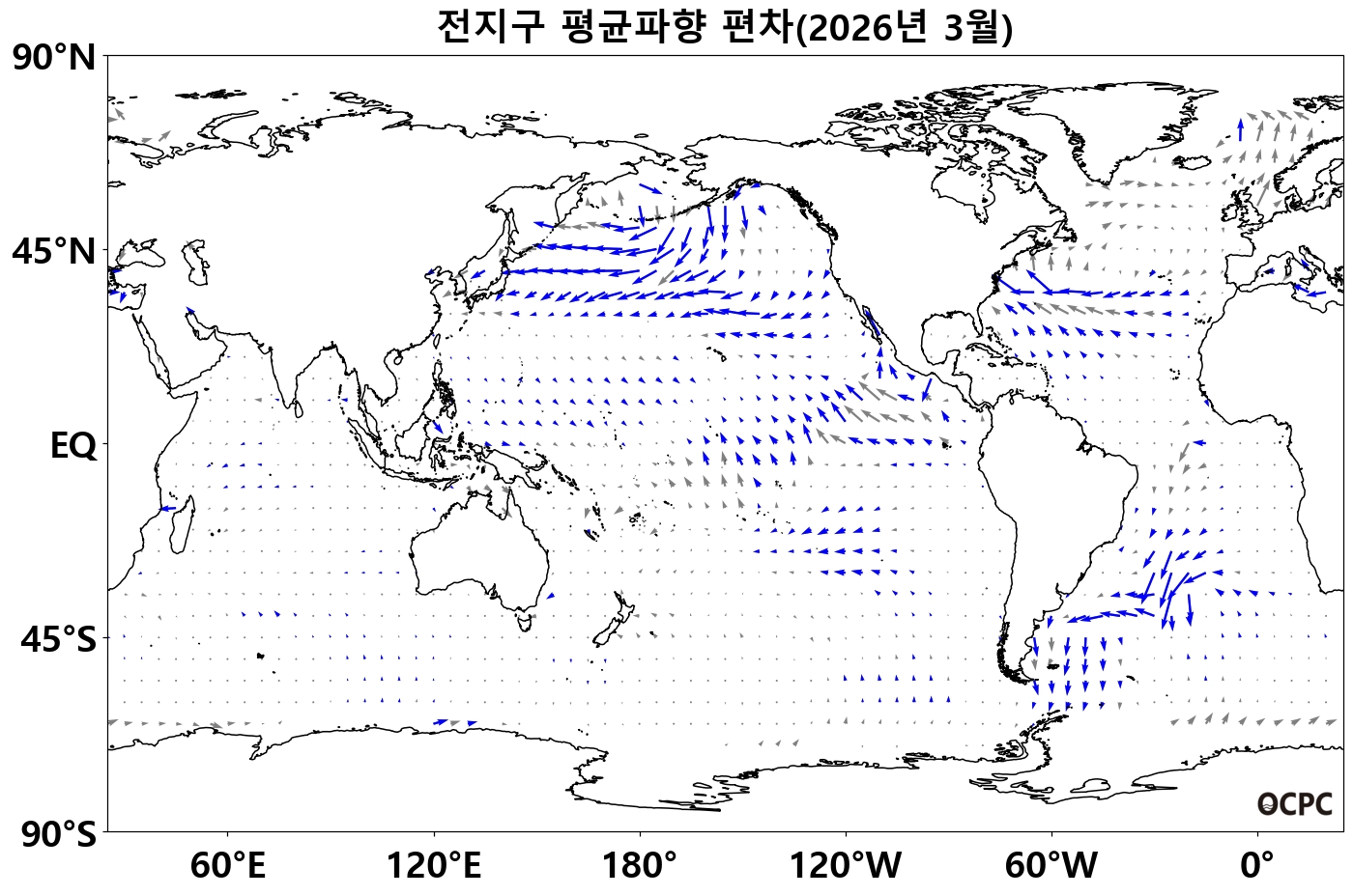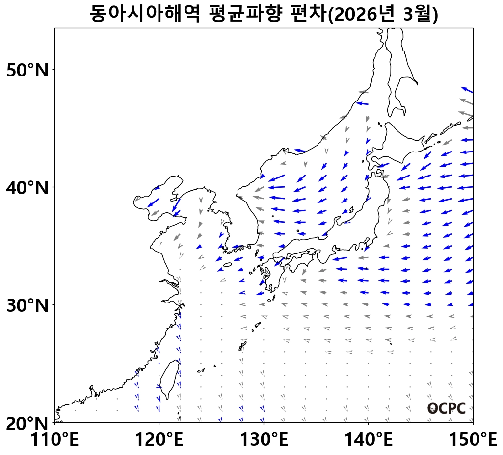 청색벡터(화살표): 평년 표준편차 초과 해역