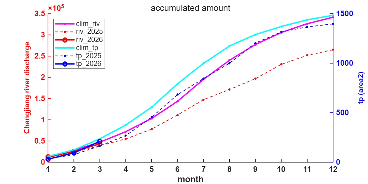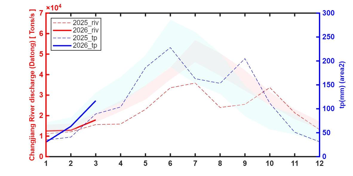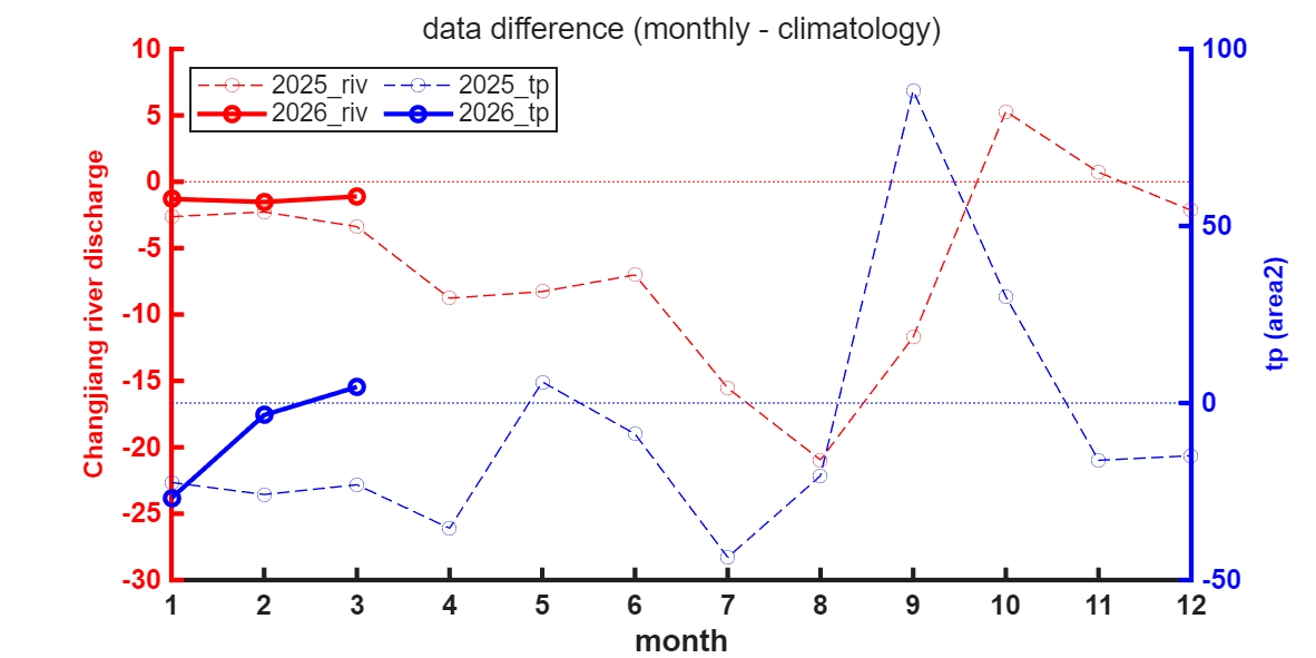 - 장강유역 강수량과 장강유입량의 누적량 모두 2025년 3월보다는 증가함. 그러나 여전히 평년보다는 감소함.