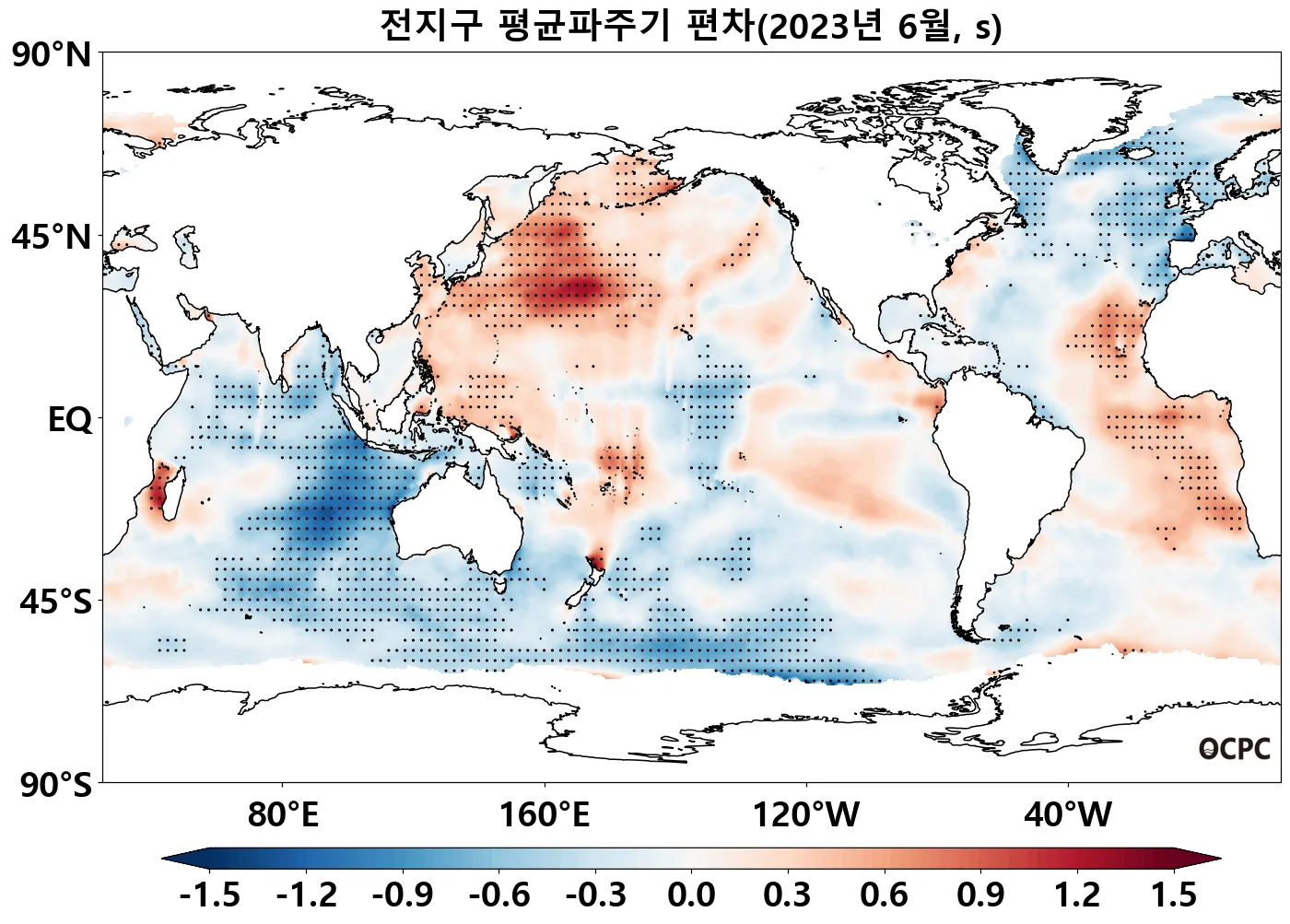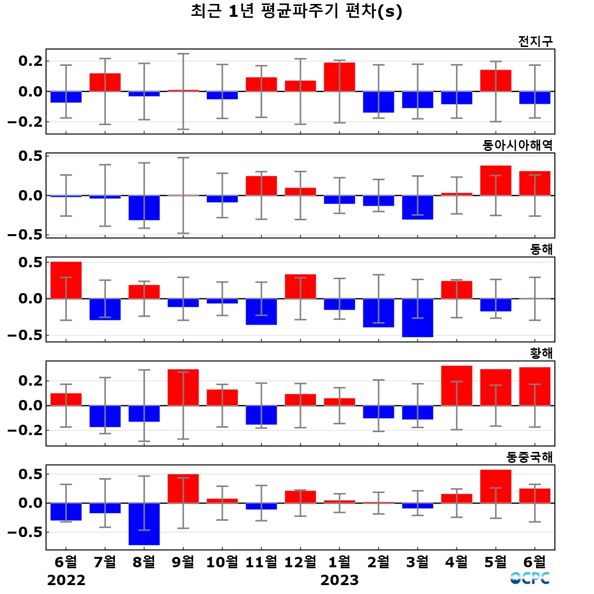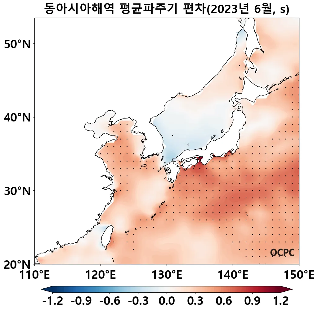 평균파주기(+0.3초)는 평년보다 증가했습니다.