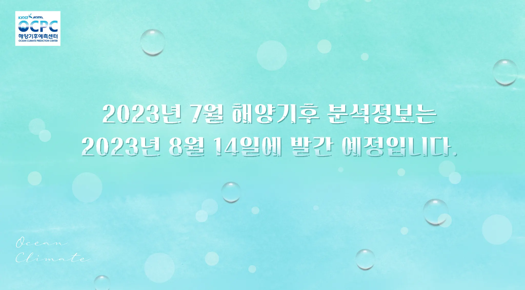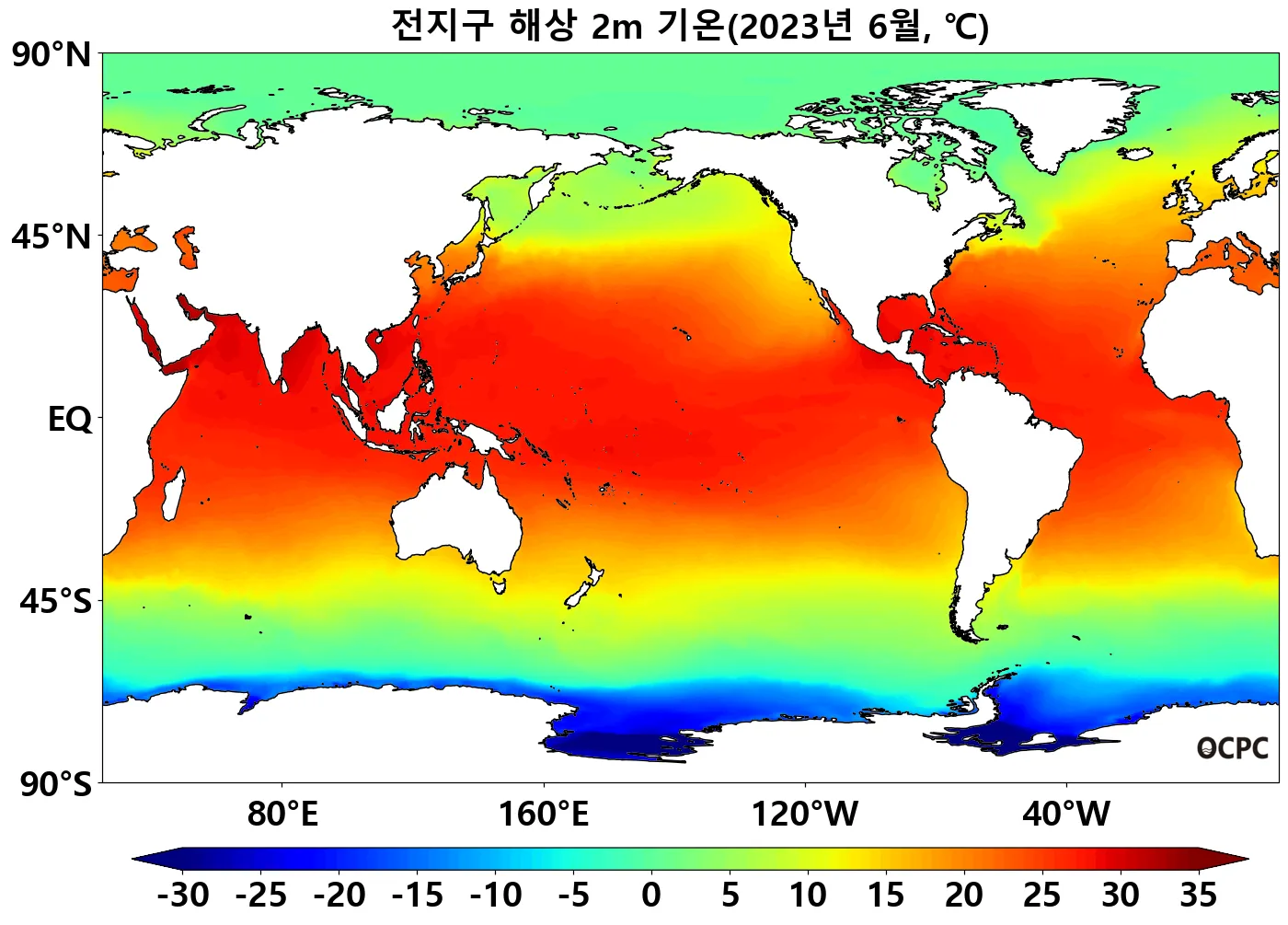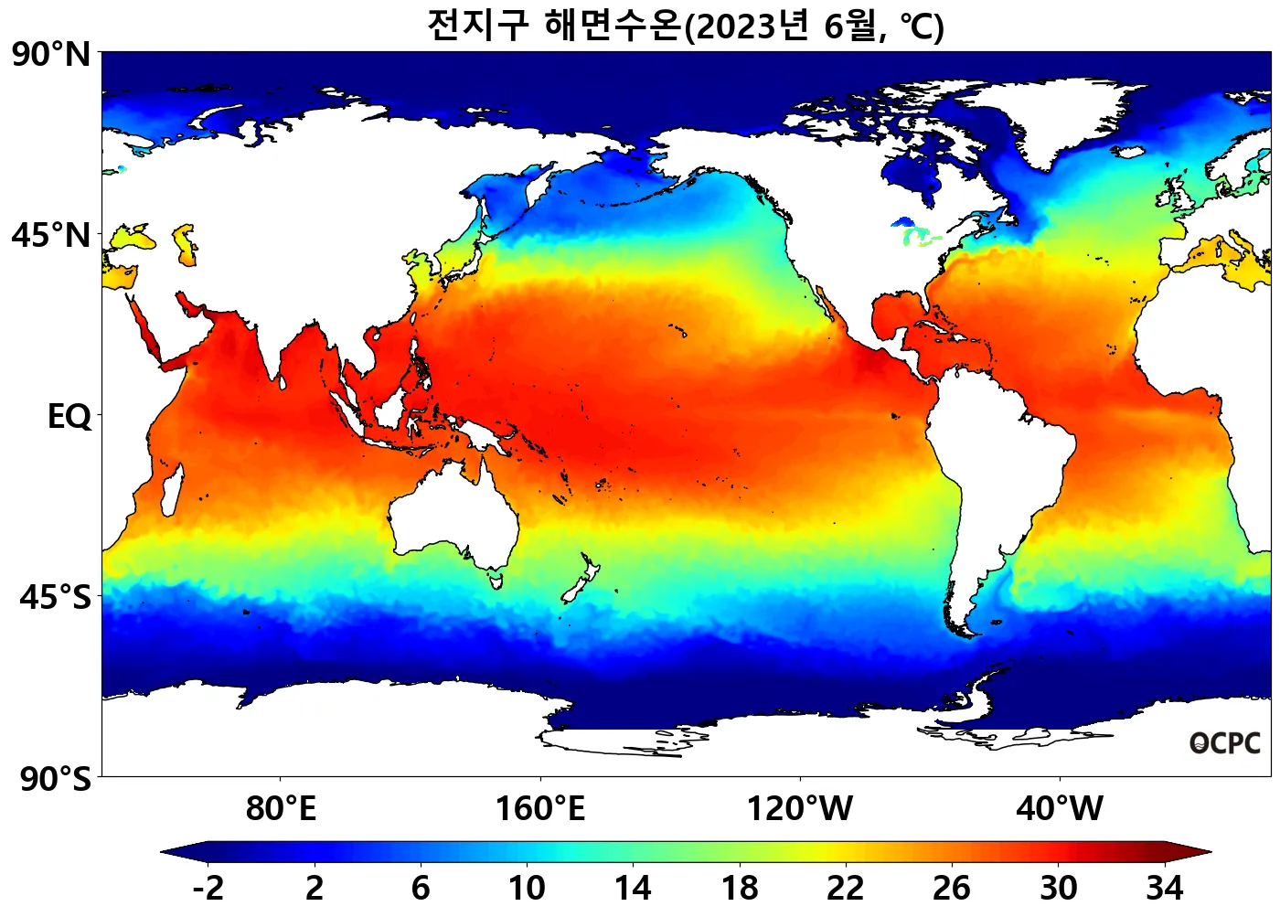 1993~2023년 동안 전지구 6월 해면수온은 10년에 0.2°C씩 증가하는 추세이며, 동아시아해역의 추세는 10년에 0.2~0.5°C로 그 중 동해의 상승률이 가장 큽니다.