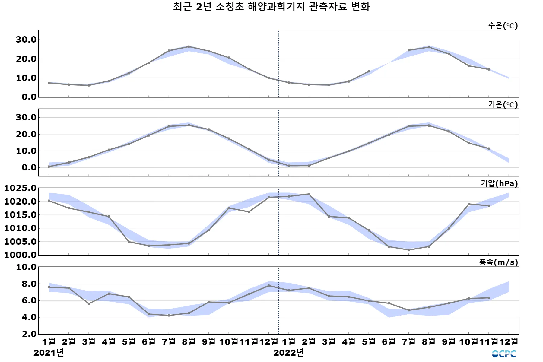 ※ 본 ‘해양과학기지 자료 분석 (2022년 11월)’은 분석은 국립해양조사원에서 제공하는 해양과학기지 관측자료를 사용하였음