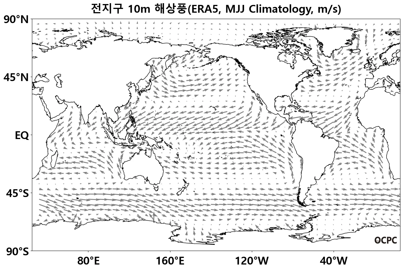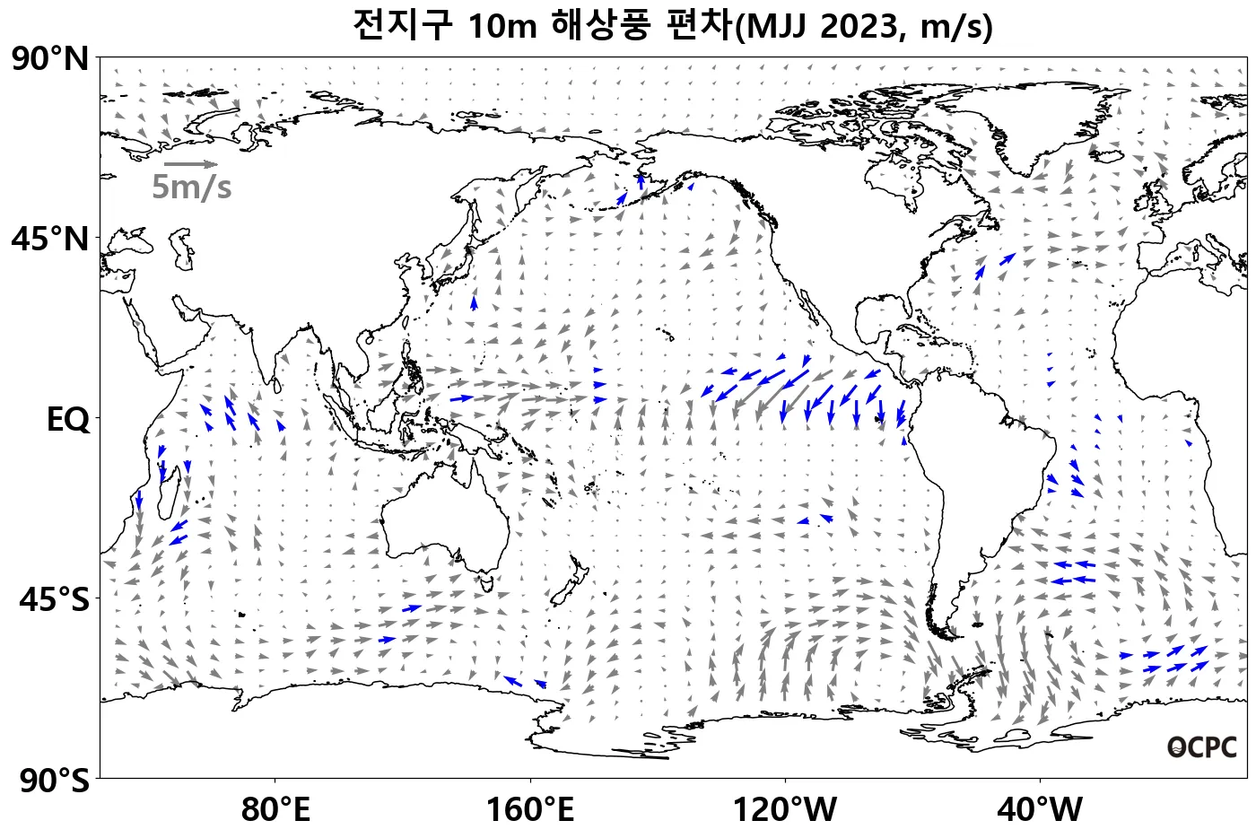 B. 전지구 해상풍(평년 5~7월 평균)