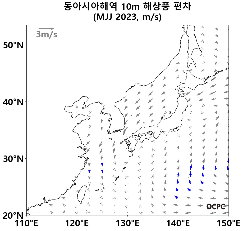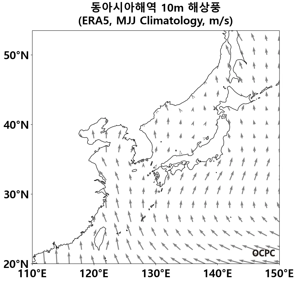 B. 동아시아해역 해상풍(평년 5~7월 평균)