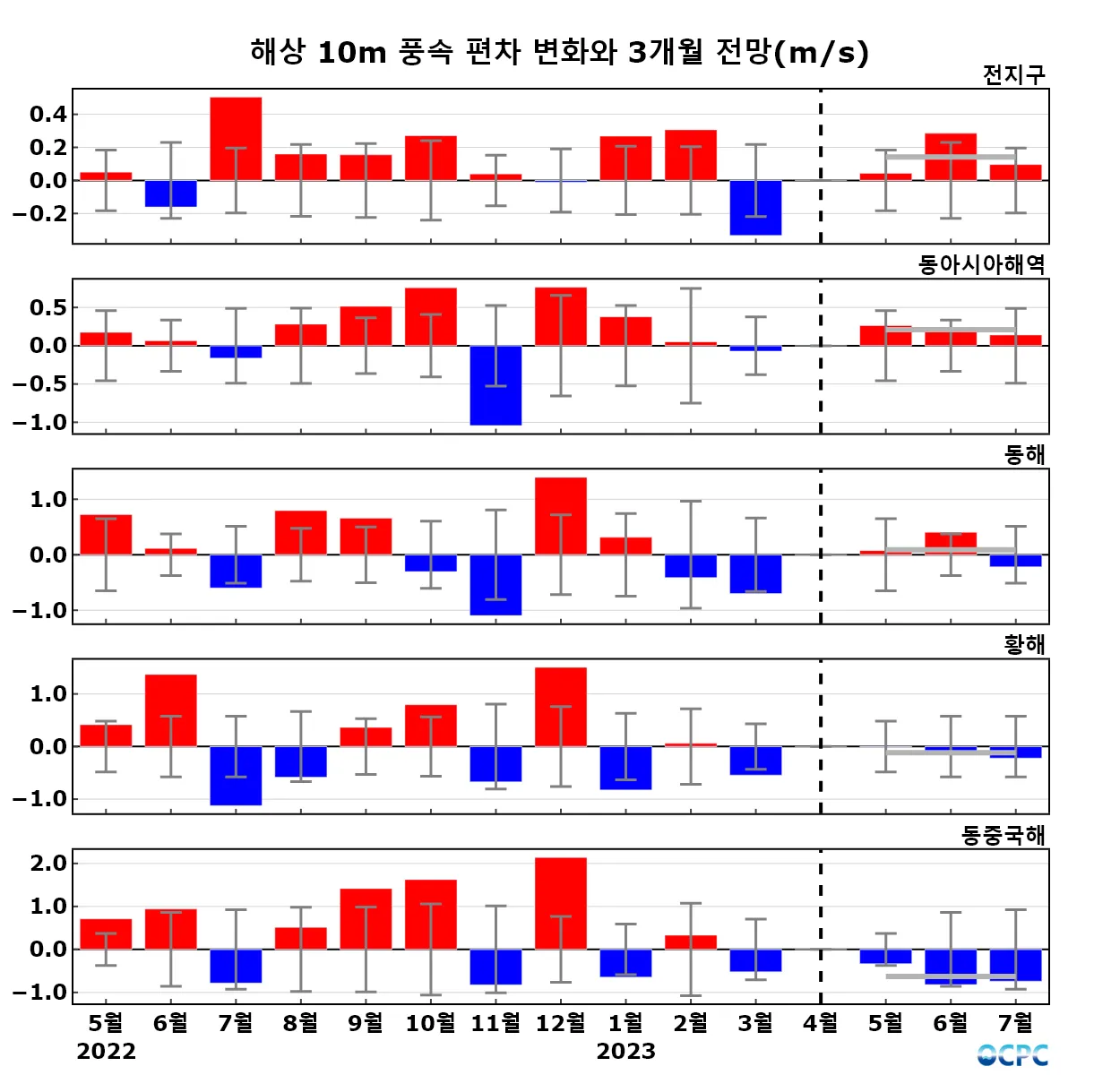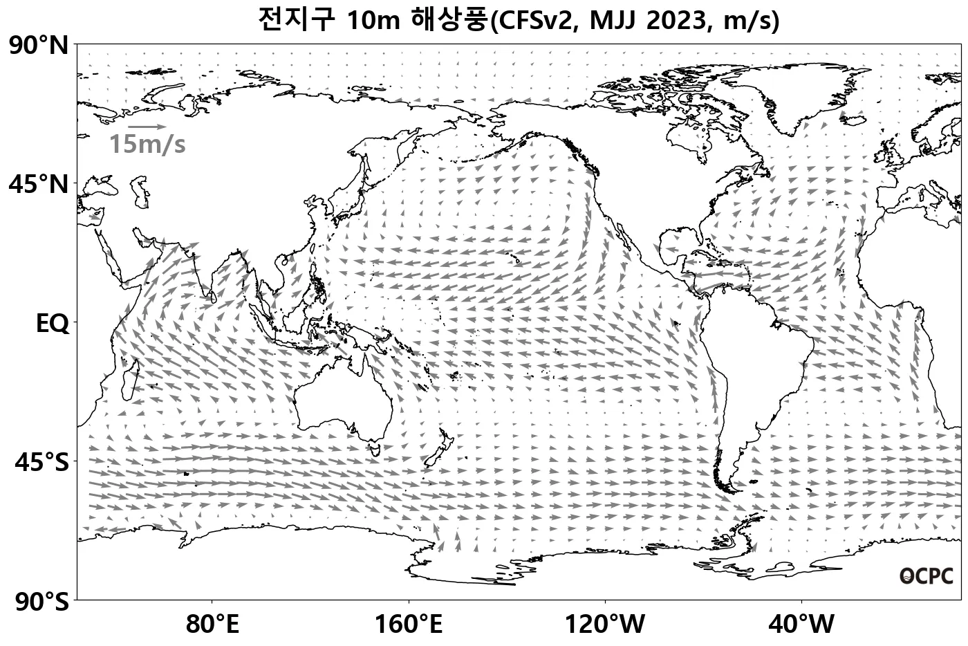 A. 전지구 해상풍 전망(2023년 5~7월 평균)