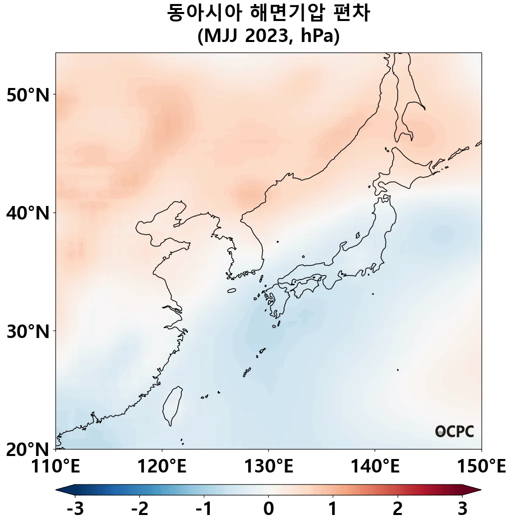 A. 동아시아 해면기압 전망(2023년 5~7월 평균)