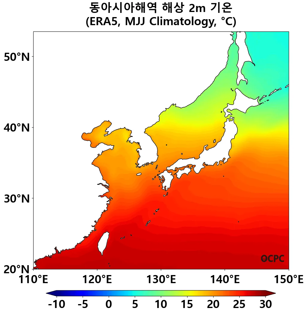 B. 동아시아해역 해상기온(평년 5~7월 평균)