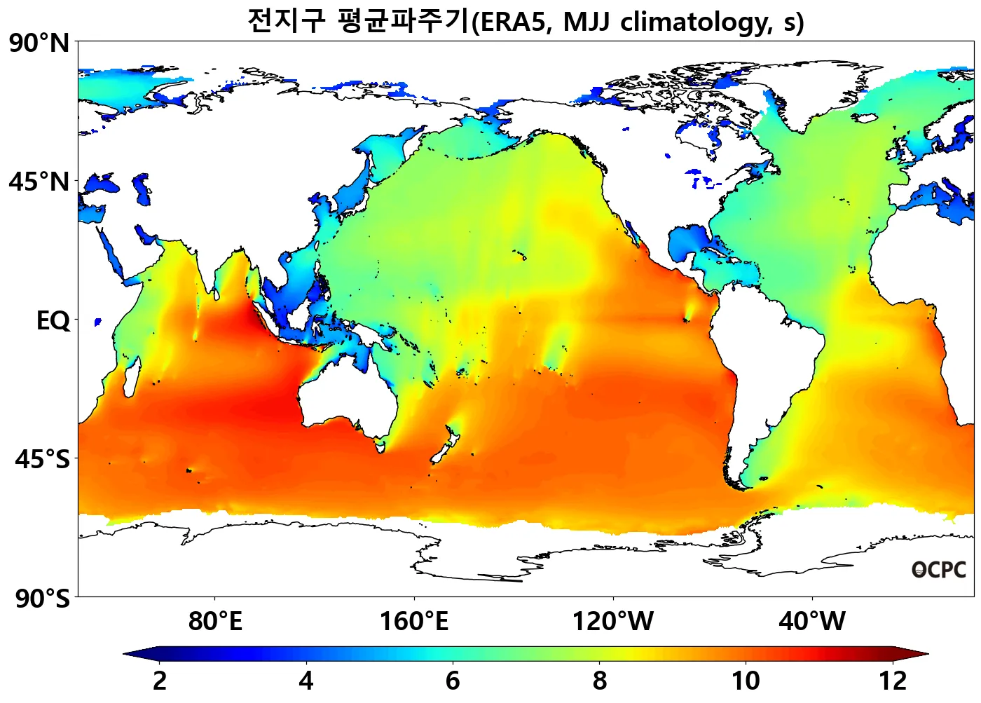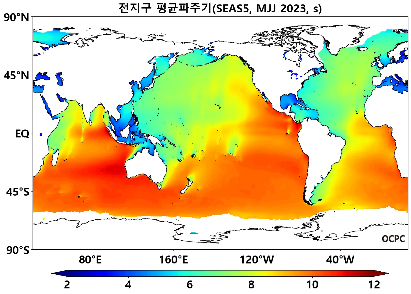 전지구 평균파주기는 평년(8.4±0.2초)과 비슷할 것으로 전망됩니다.