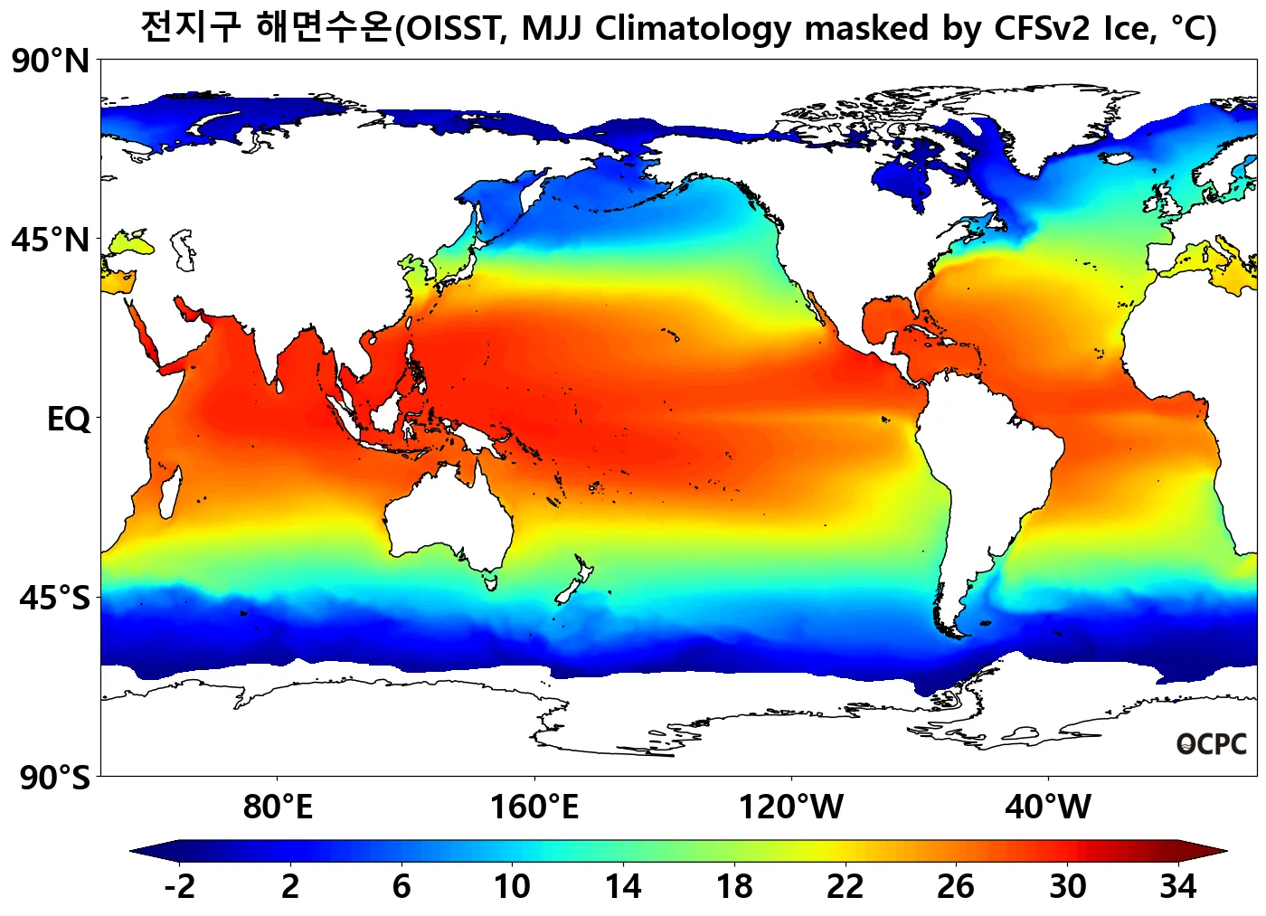 B. 전지구 해면수온(평년 5~7월 평균), 예상 해빙 해역 제외