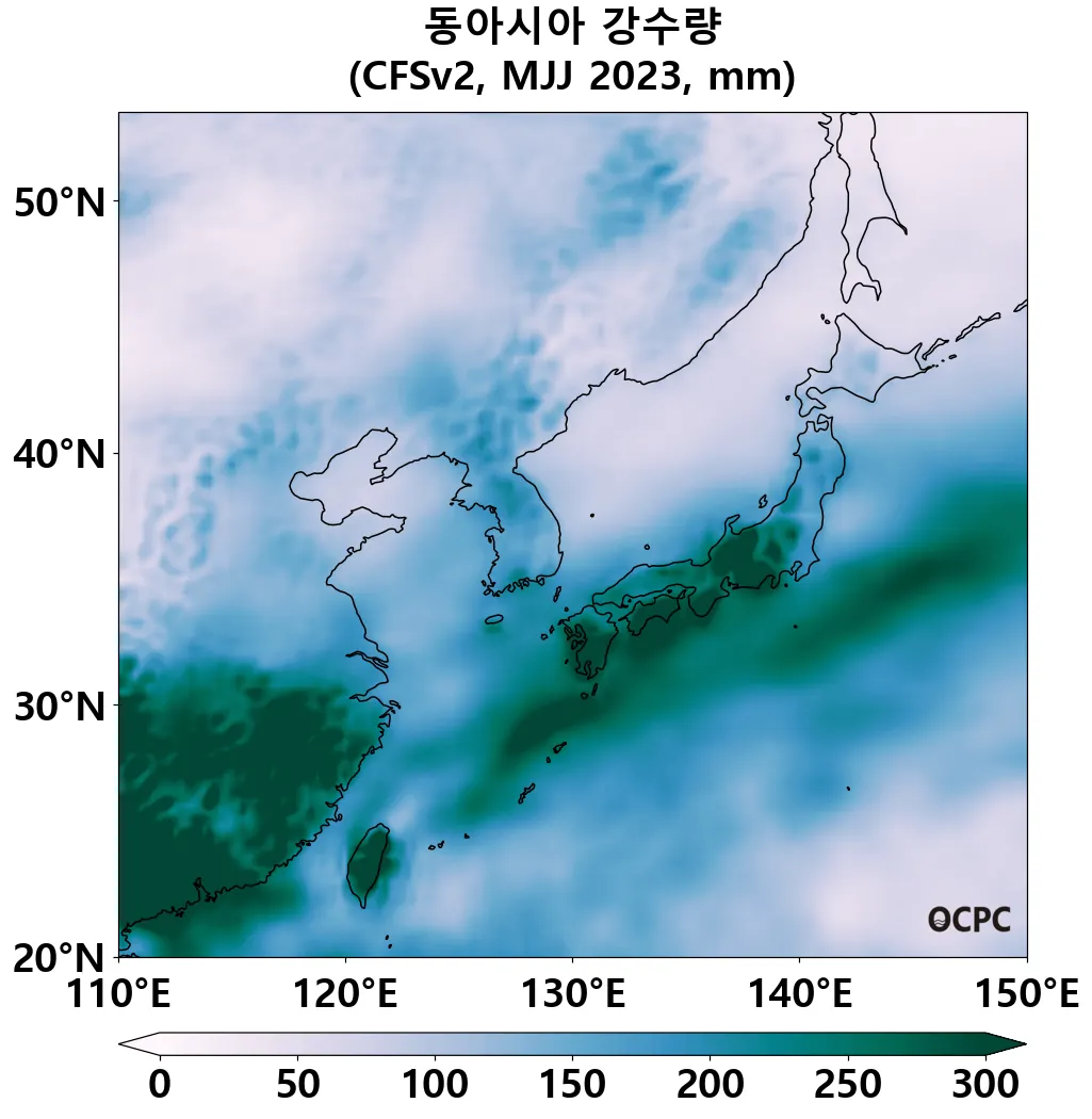 A. 동아시아 강수량 전망(2023년 5~7월 평균)