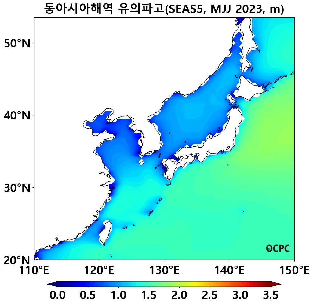 A. 동아시아해역 유의파고 전망(2023년 5~7월 평균)