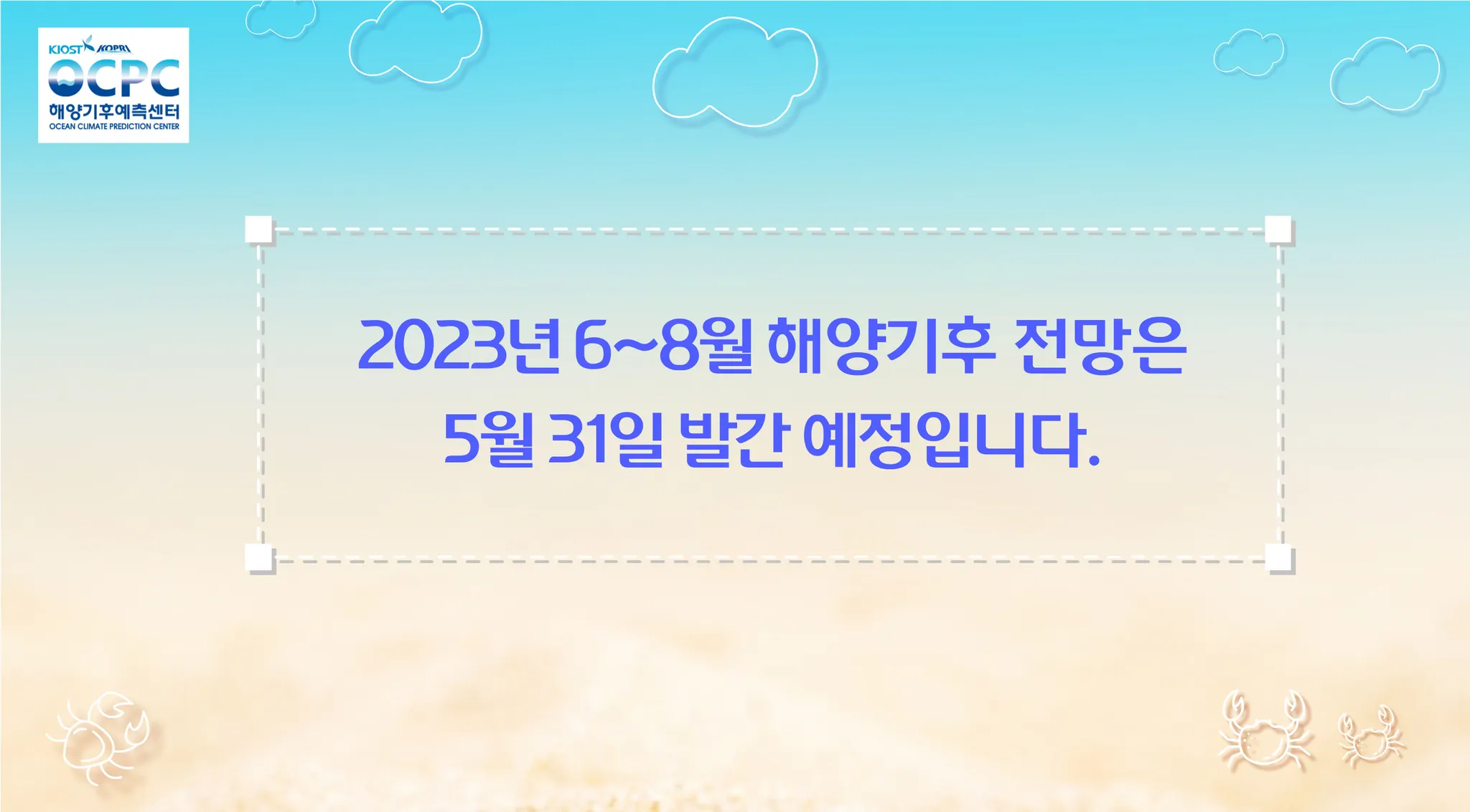 동해의 5~7월 평균 해상기온은 평년(14.8±0.8℃)보다 높겠습니다. 황해와 동중국해의 해상기온은 평년(18.8±0.7℃, 23.6±0.5℃)과 비슷하겠습니다.