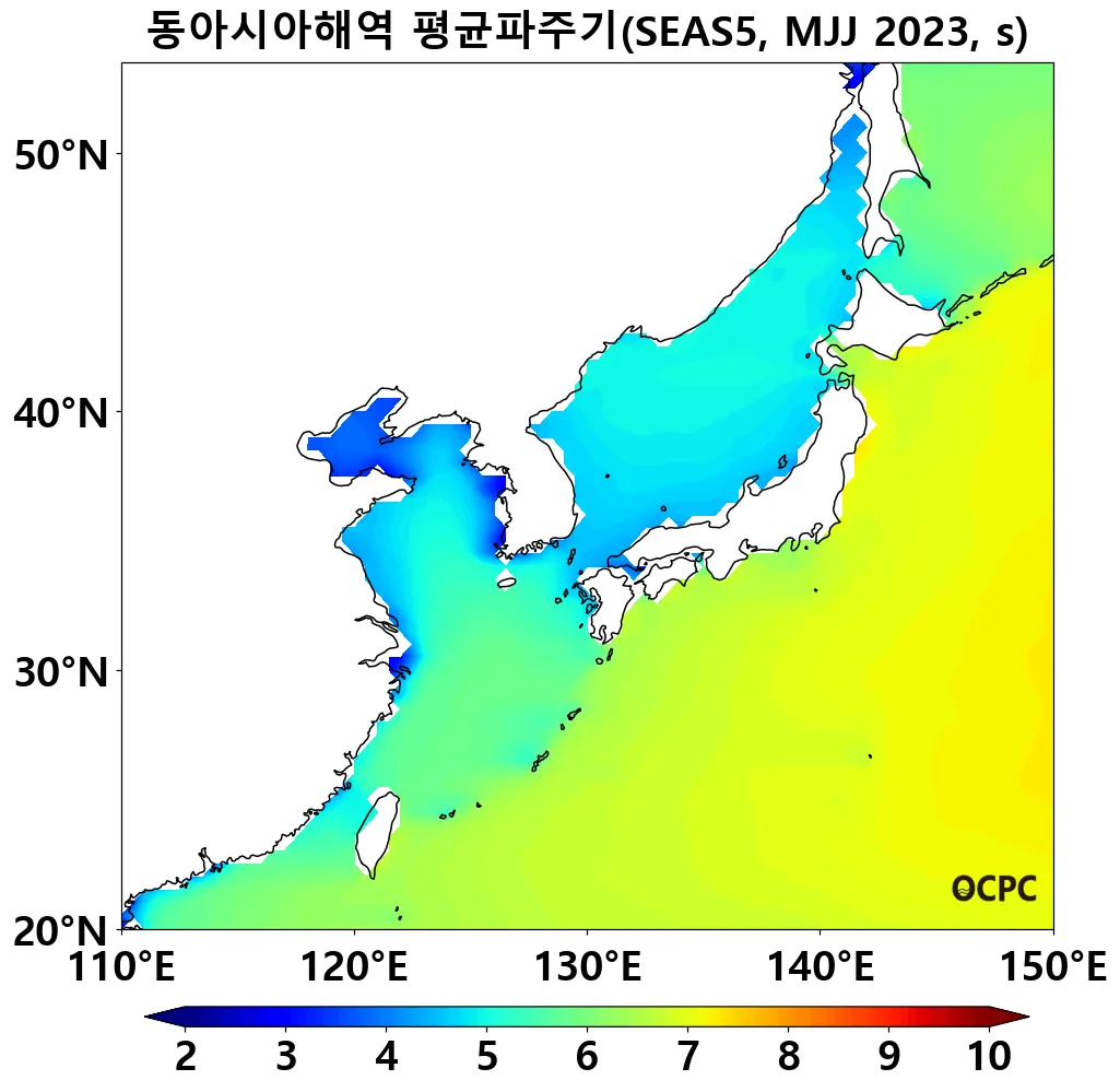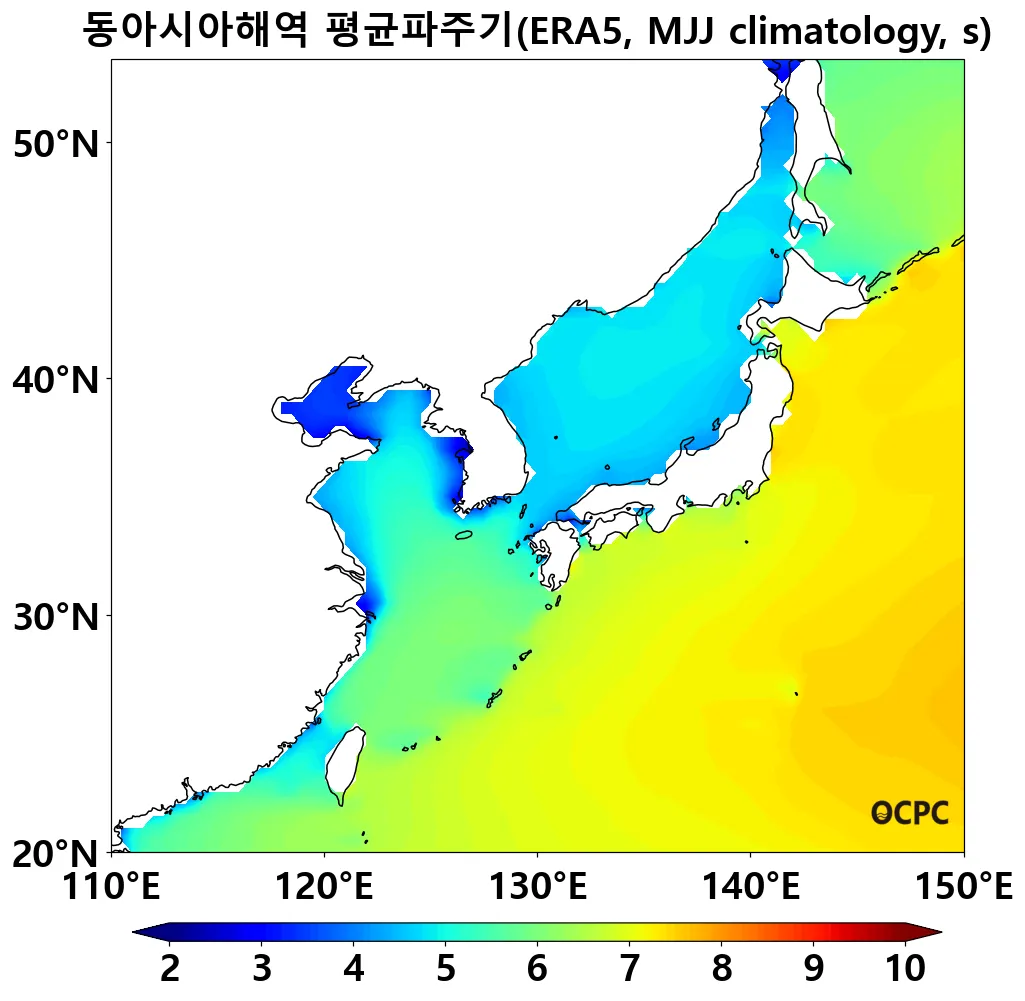 B. 동아시아해역 평균파주기(평년 5~7월 평균)