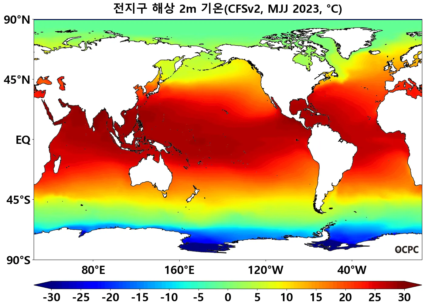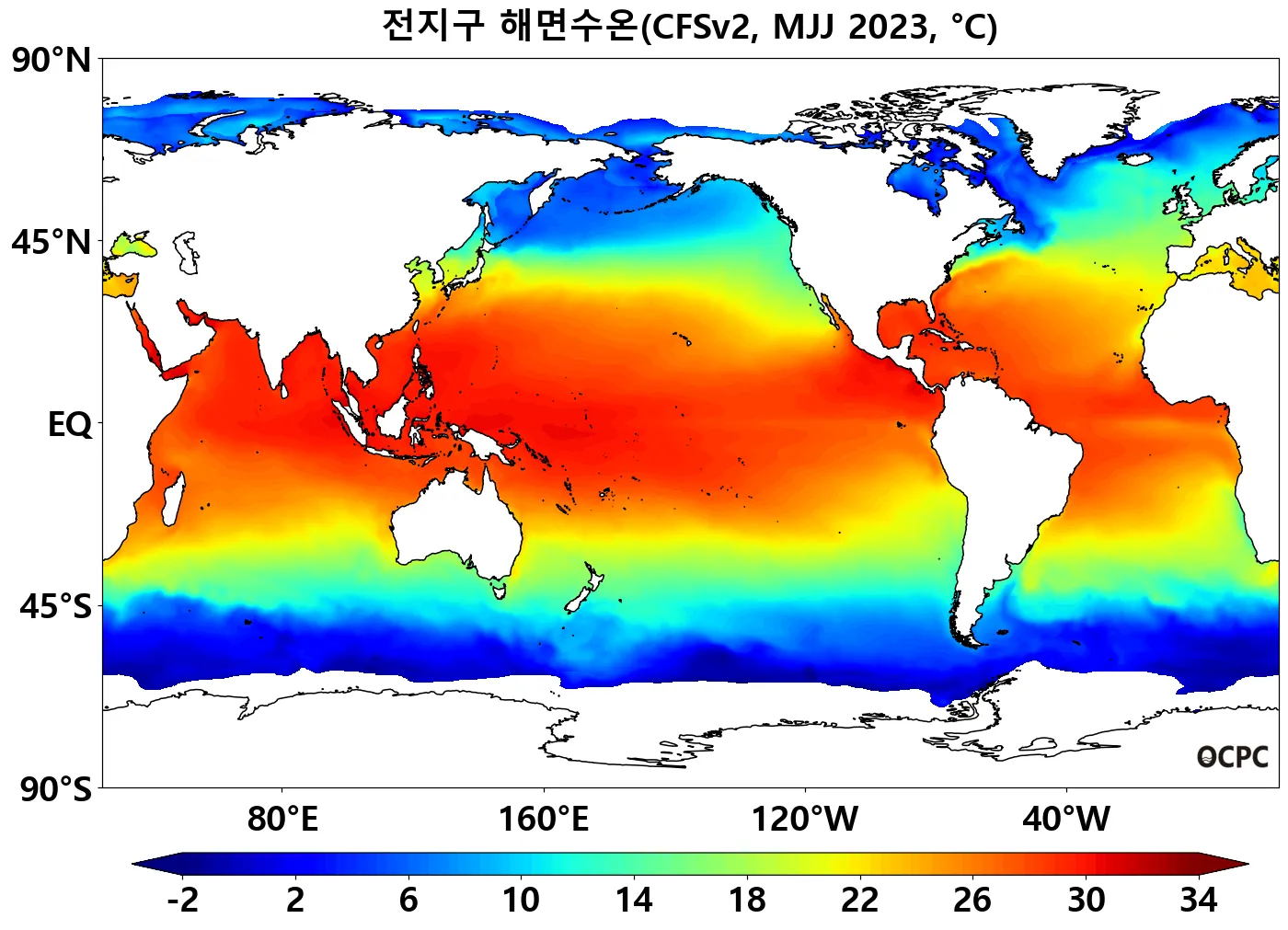 A. 전지구 해면수온 전망(2023년 5~7월 평균)