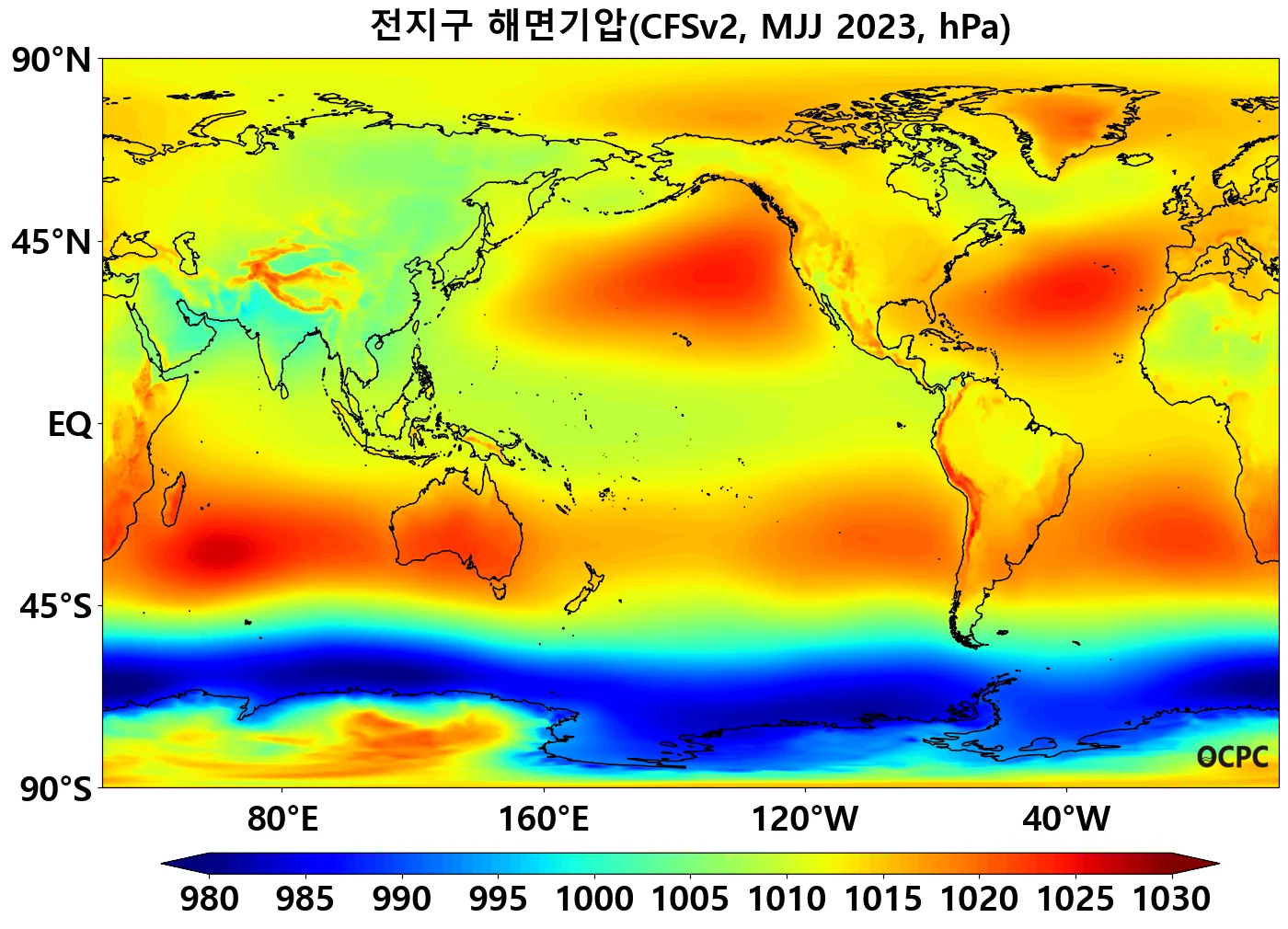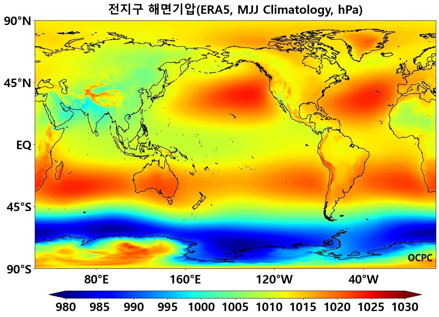 B. 전지구 해면기압(평년 5~7월 평균)