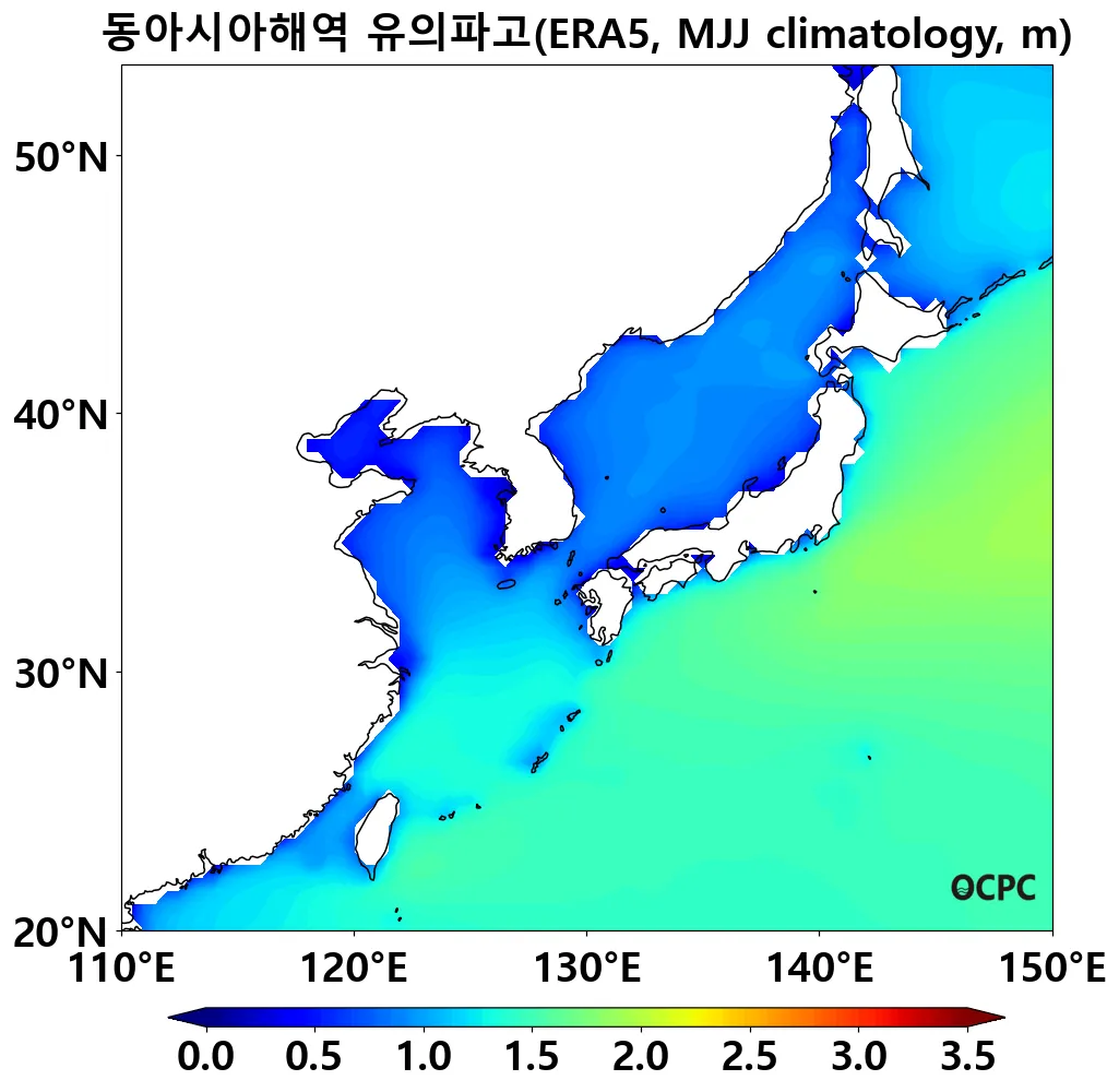 B. 동아시아해역 유의파고(평년 5~7월 평균)