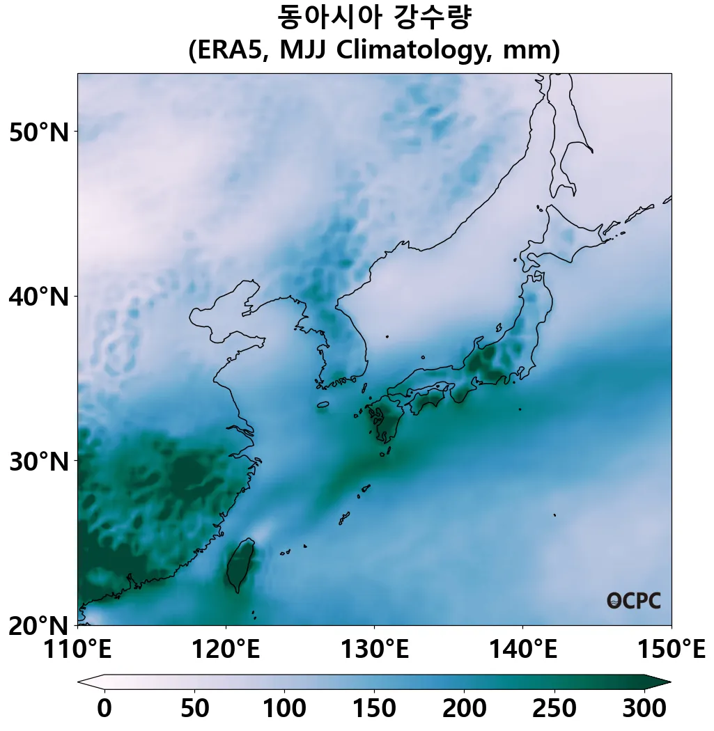 B. 동아시아 강수량(평년 5~7월 평균)
