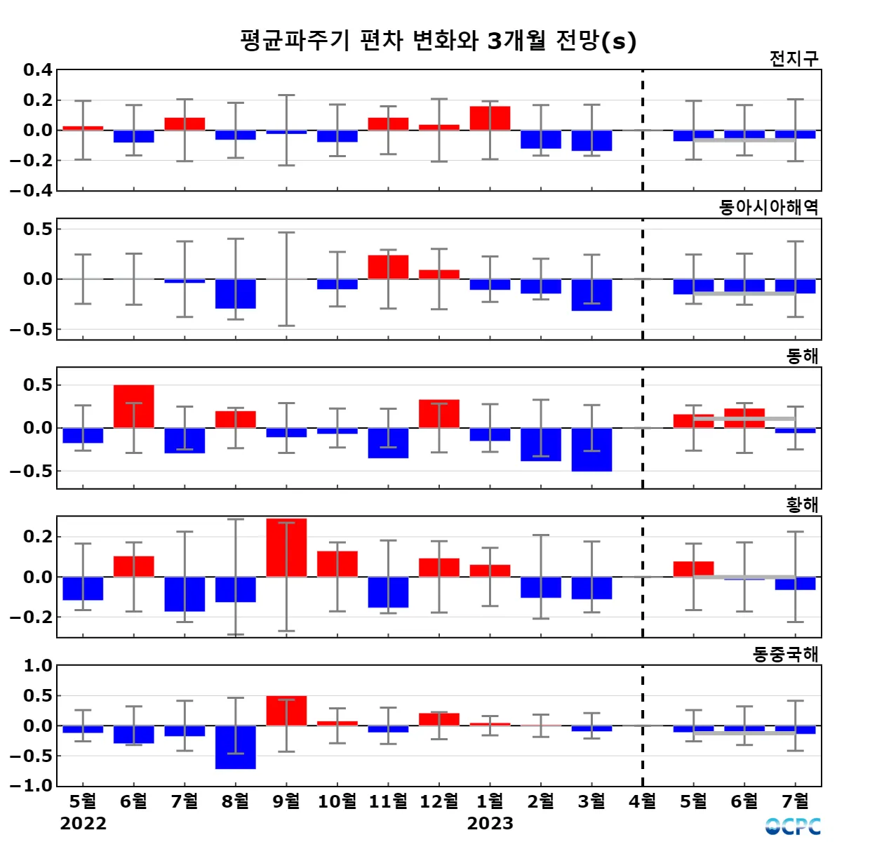 A. 전지구 평균파주기 전망(2023년 5~7월 평균)