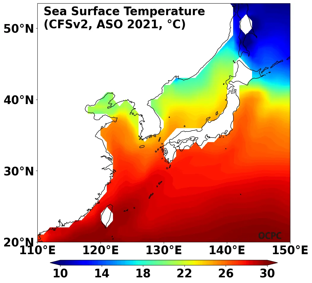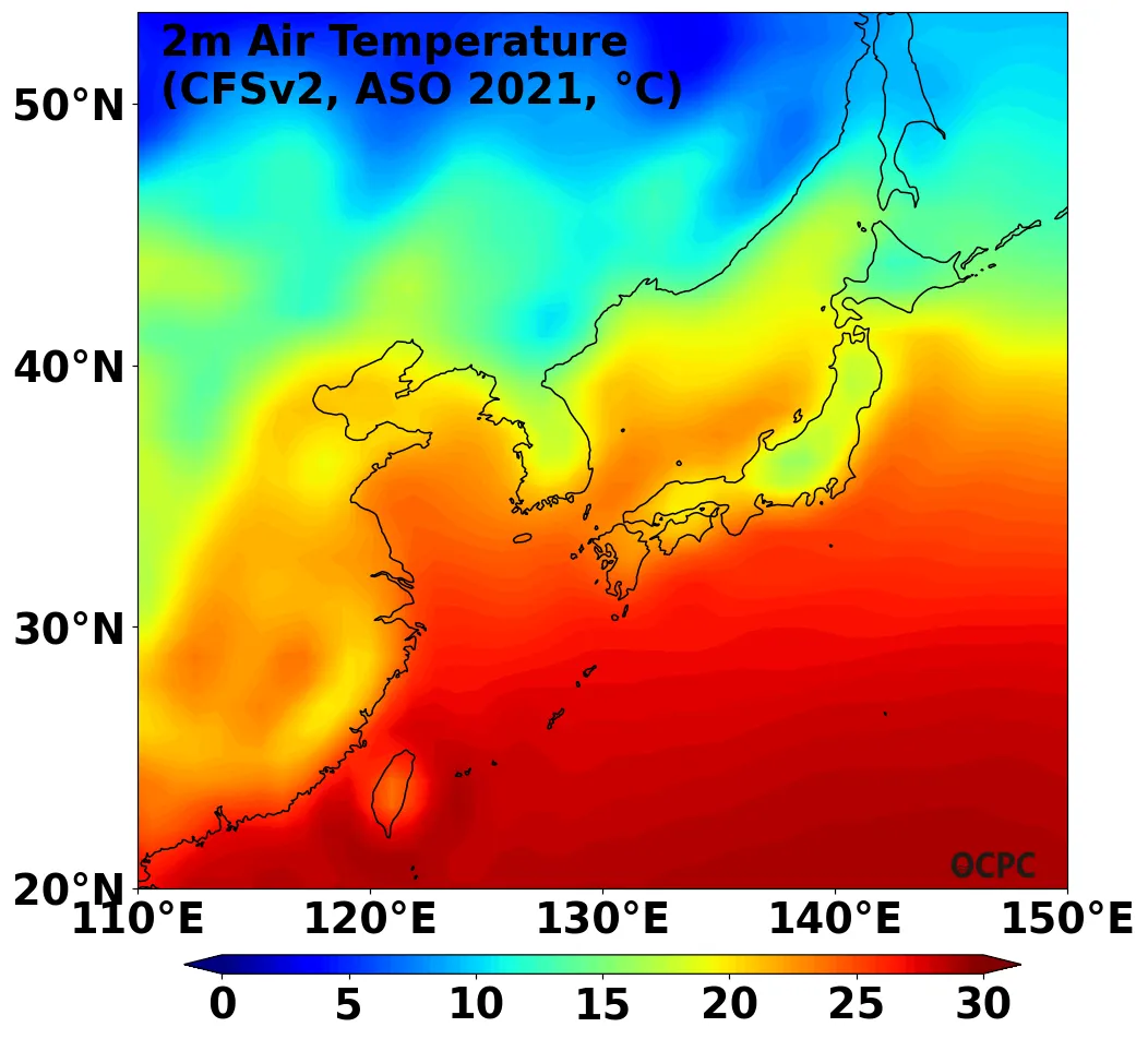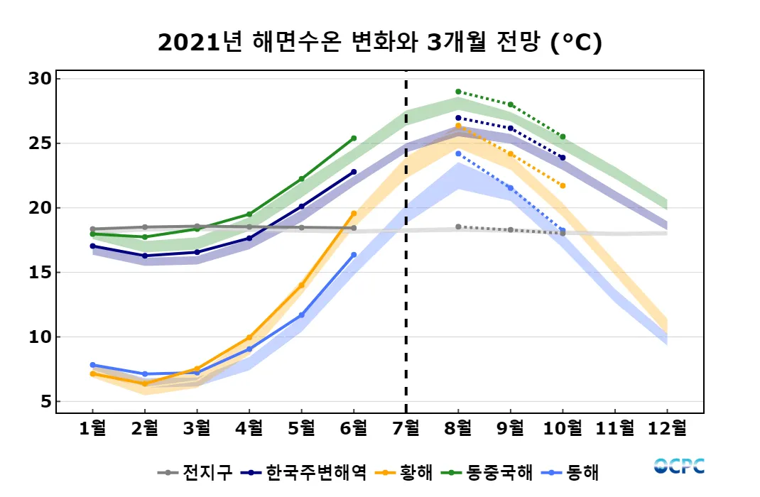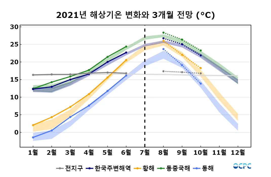 A. 한국주변해역 해상기온 전망(2021년 8~10월 평균)