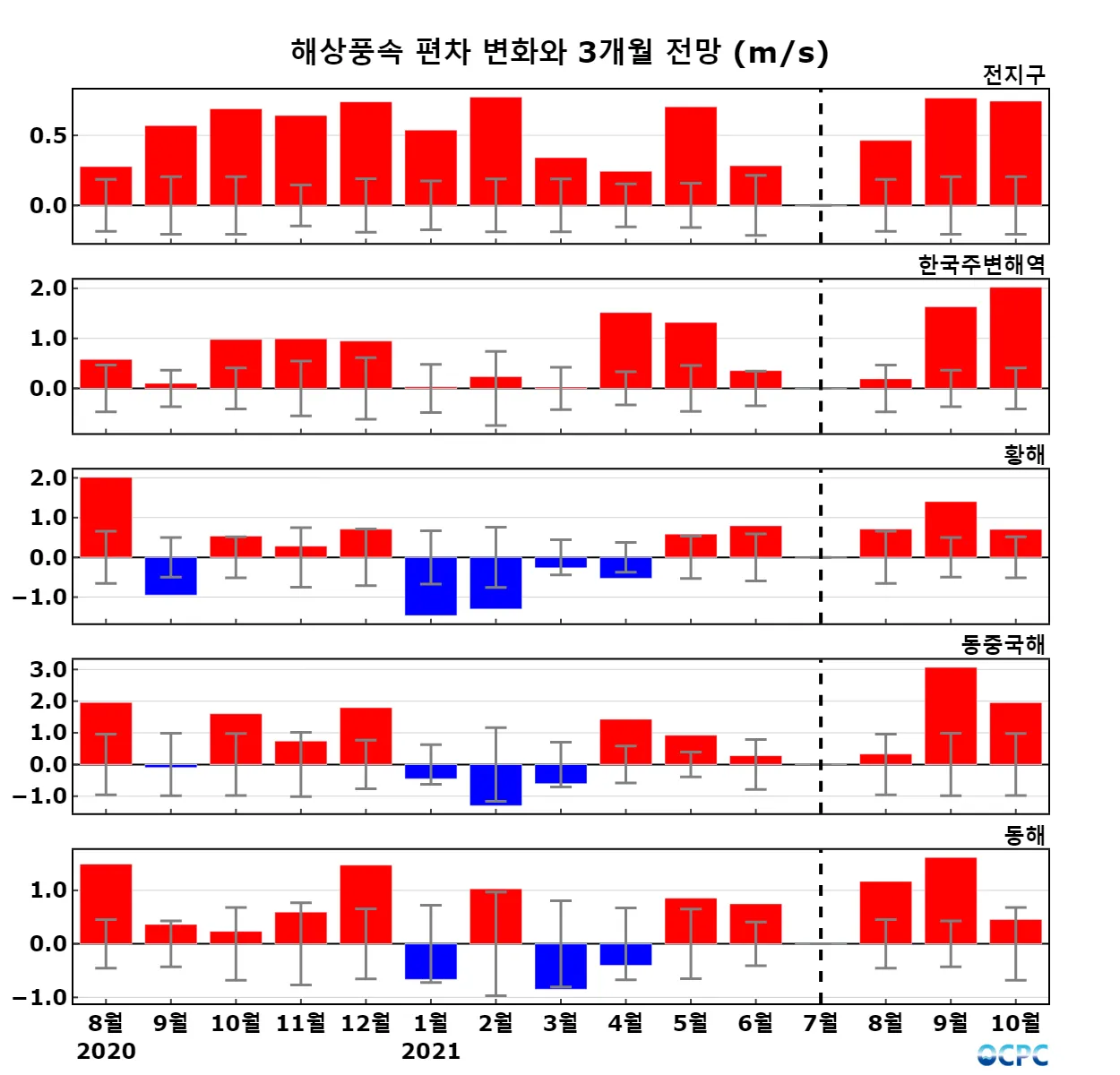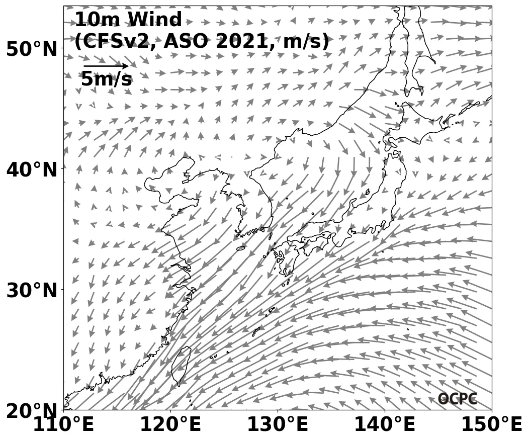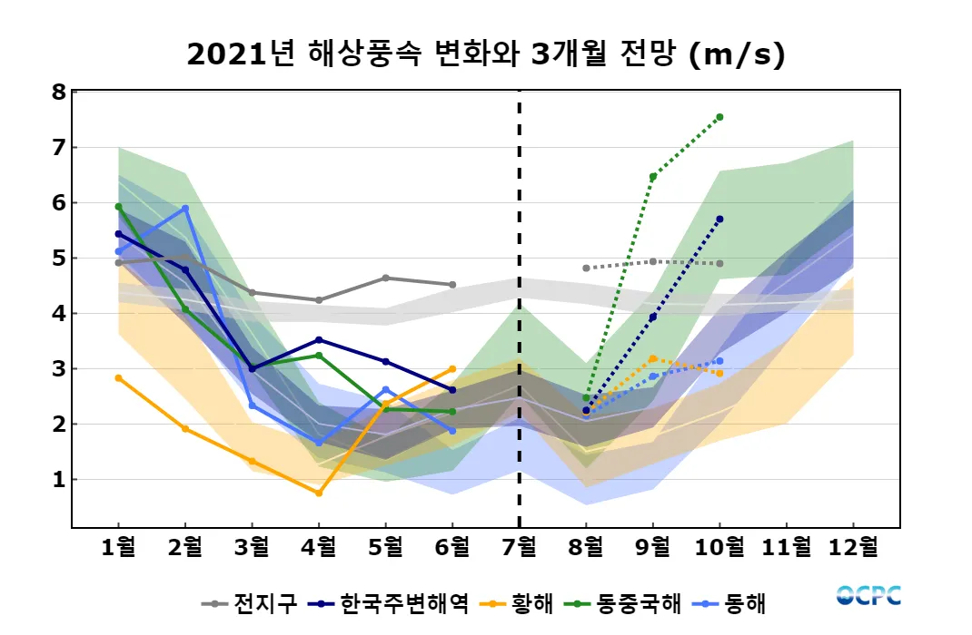 A. 전지구 해상풍 전망(2021년 8~10월 평균)