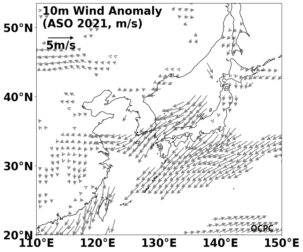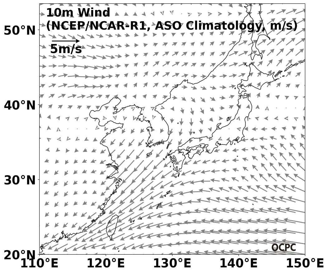 ○ (해상풍) 전지구, 한국주변해역, 황해, 동해, 동중국해의 해상풍 세기는 모두 평년보다 강하겠습니다.