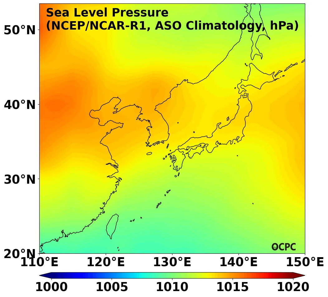 B. 한국주변해역 해면기압(8~10월 평년평균)