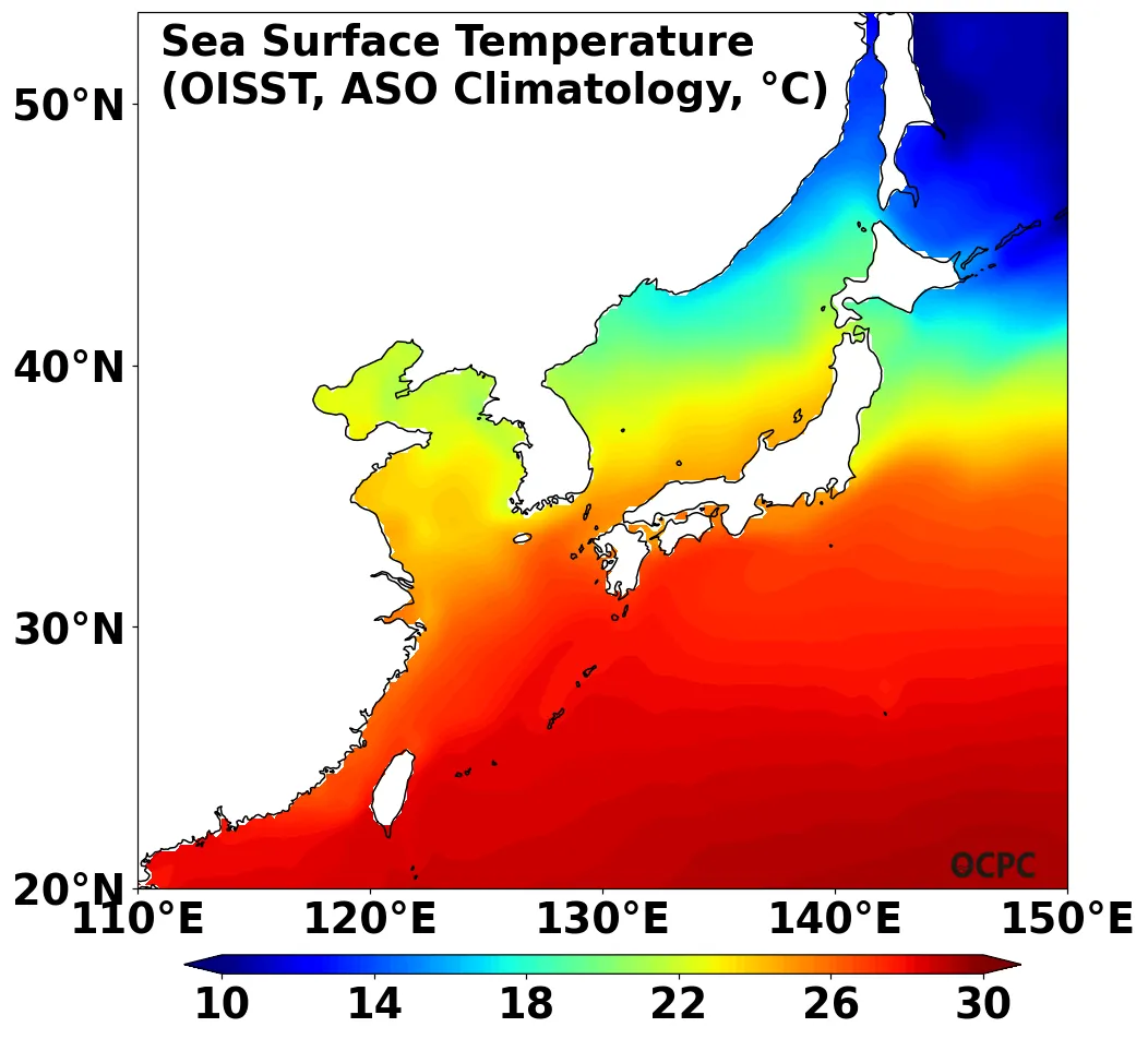 B. 한국주변해역 해상기온(8~10월 평년평균)