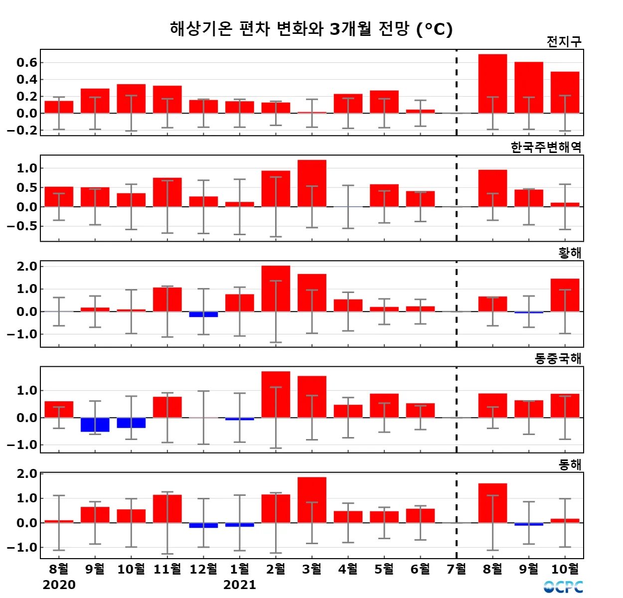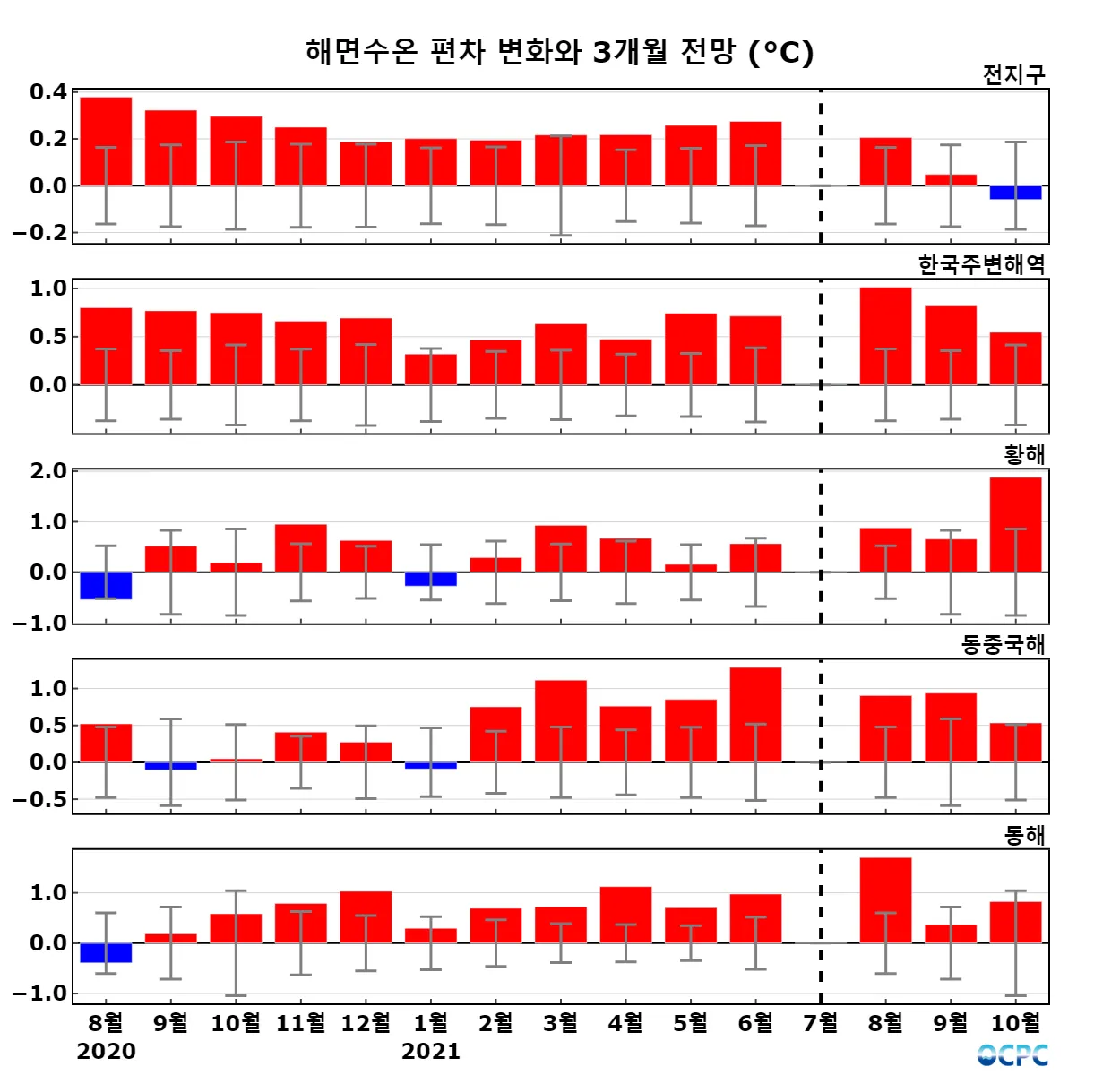 A. 전지구 해상기온 전망(2021년 8~10월 평균)