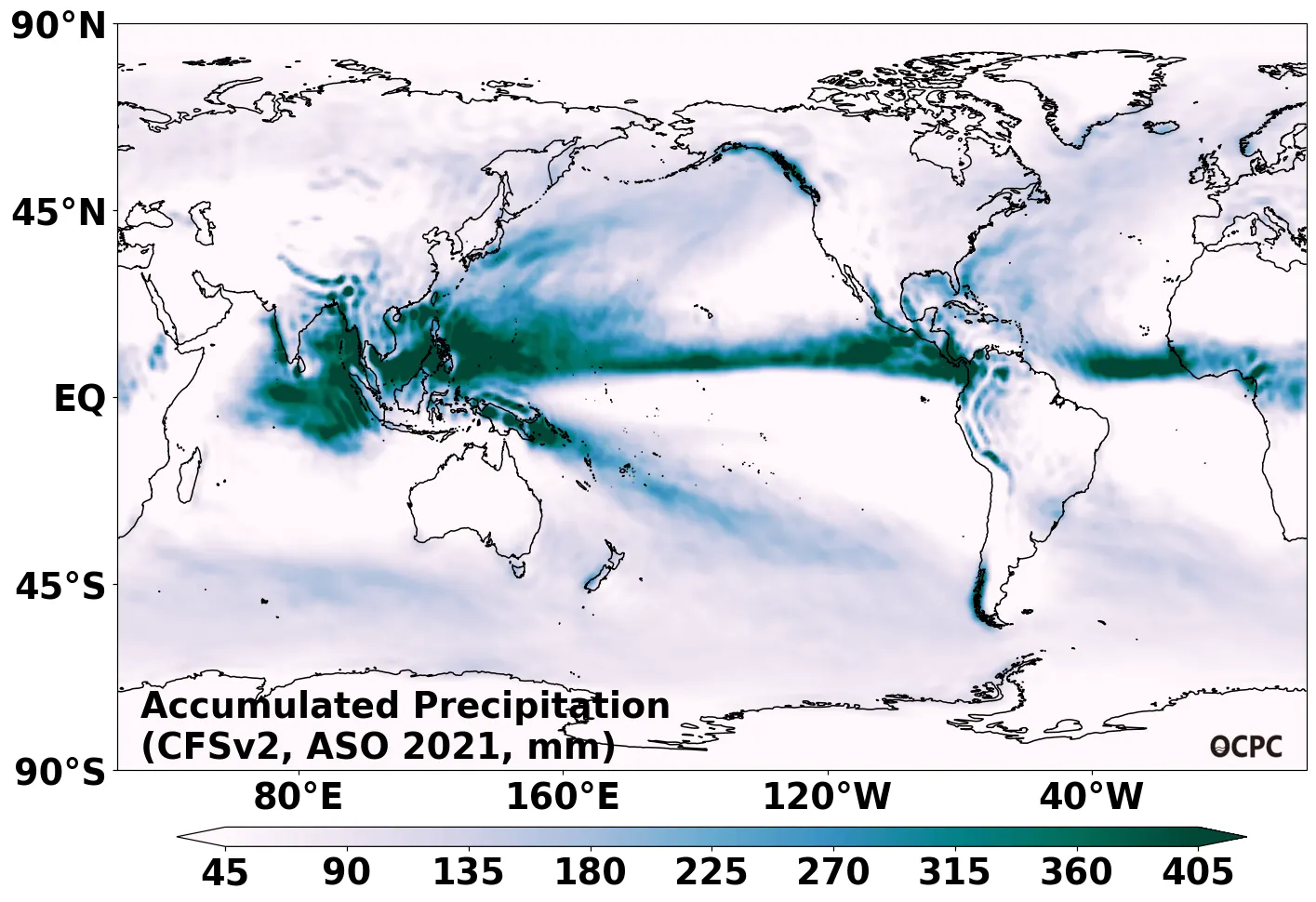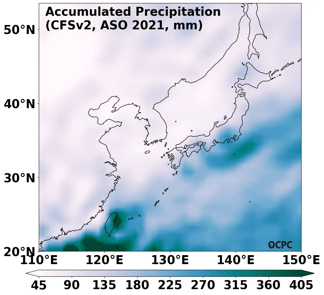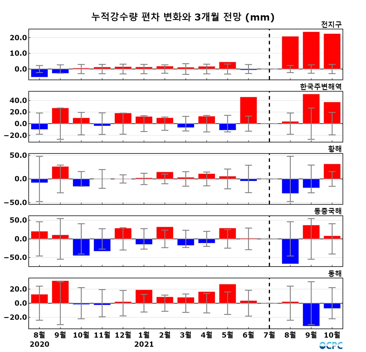 A. 전지구 누적강수량 전망(2021년 8~10월 평균)